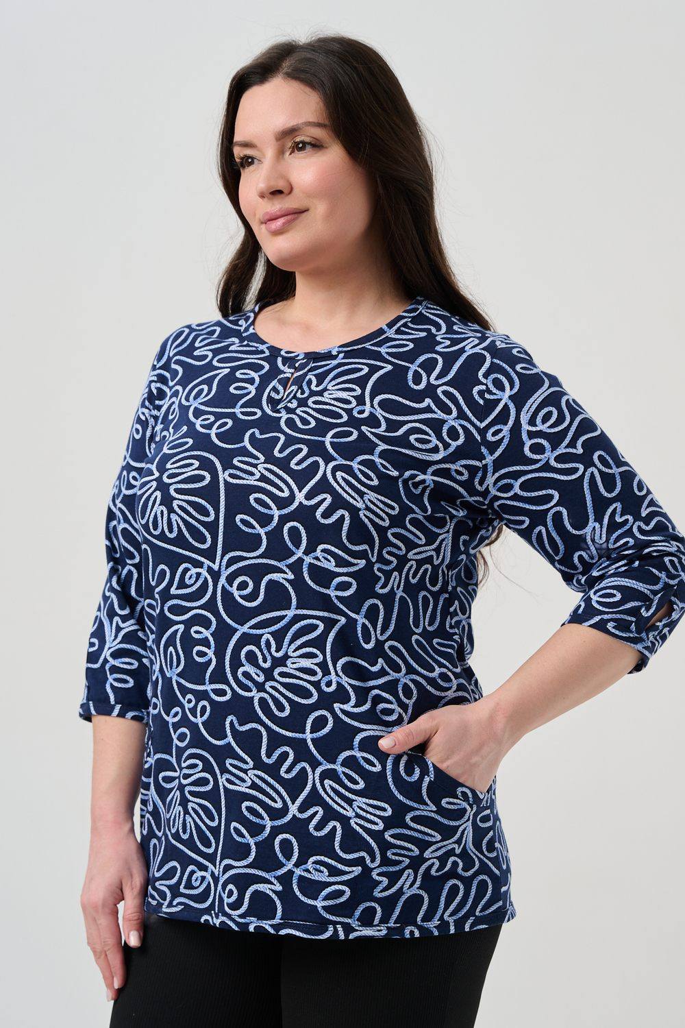 Универсальная базовая модель. Капелька на груди и на рукавах. Удобные внутренние карманы. Отличный вариант для женщин больших размеров. Благодаря своей оптимальной длине, рукаву 3/4, блузка обеспечивает универсальность и комфорт.