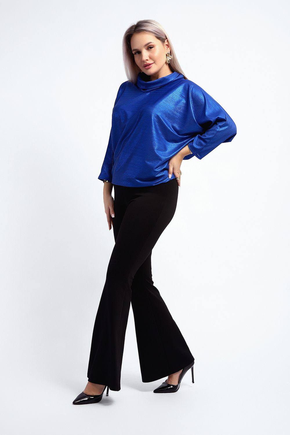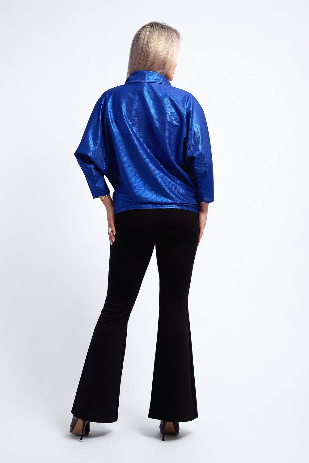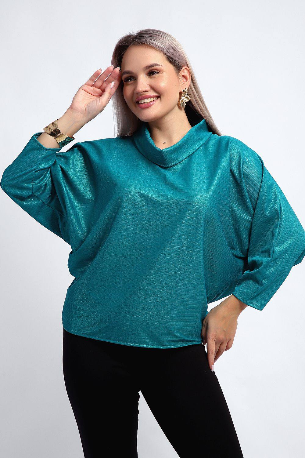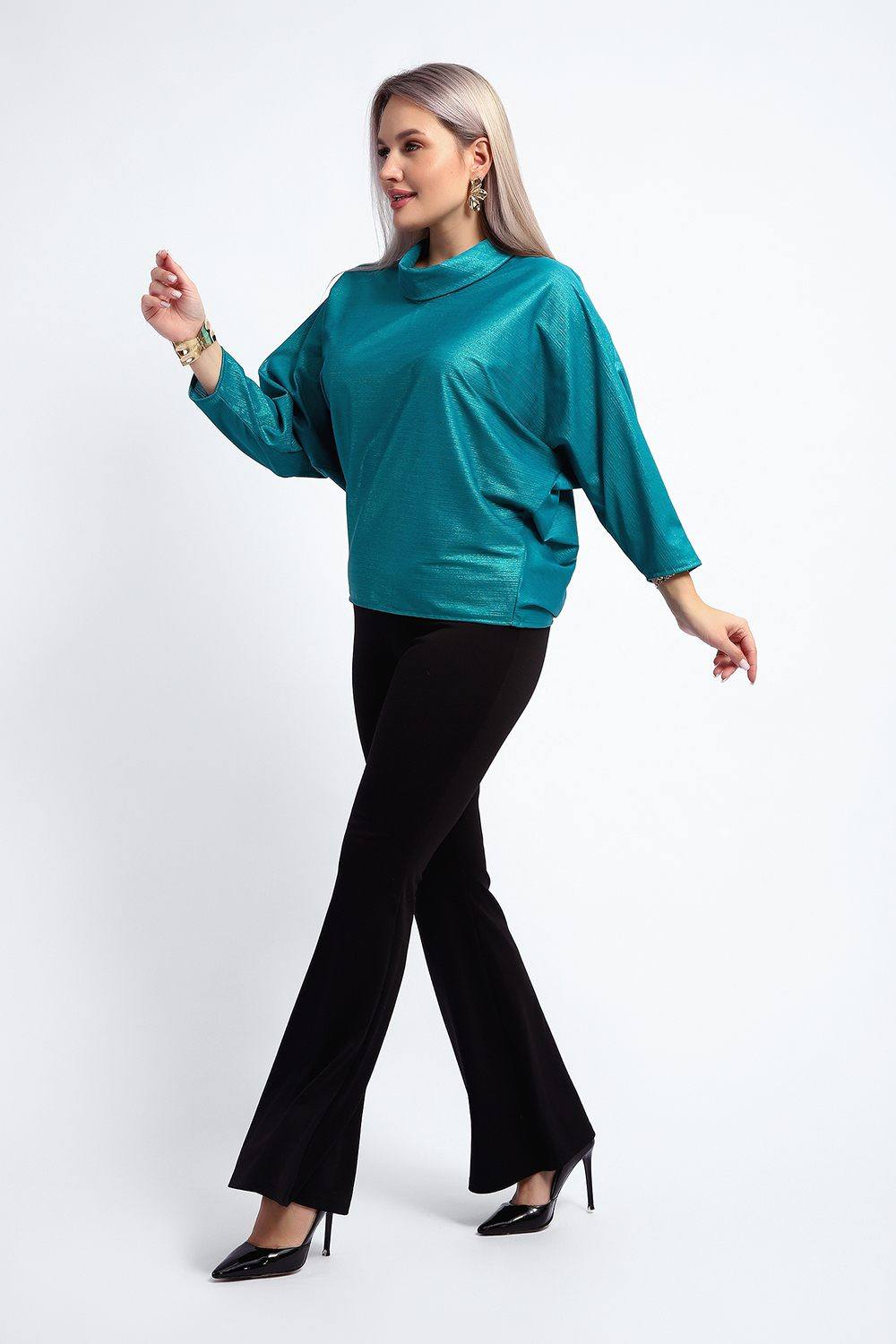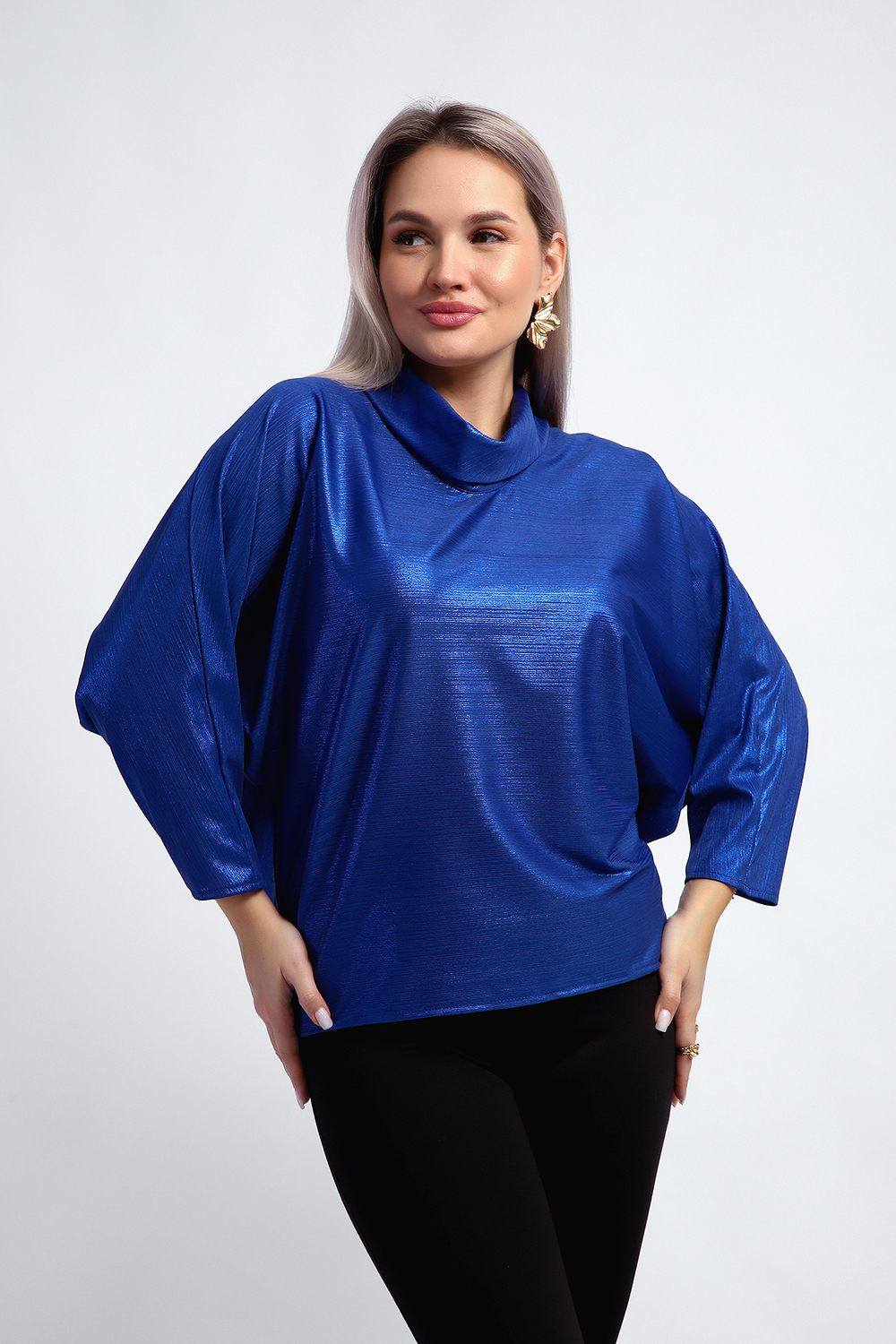 Нарядная и эффектная блузка из ткани шифон-металлик. Ткань тонкая, слегка прозрачная, имеет красивый металлический блеск, переливаясь на складках изделия, не мнется и отлично драпируется. Свободный крой и рукав "летучая мышь" делает эту блузку универсальной, подходящей на любую фигуру. Длина рукава 3/4, воротник-хомут придает женственности образу. Блузка слегка заужена к низу, чтобы на бедрах образовался напуск. С помощью этой блузки можно создать и праздничный, и деловой, и повседневный образ, комбинировать с юбкой и брюками. Широкий размерный ряд - с 48 по 62 размеры.