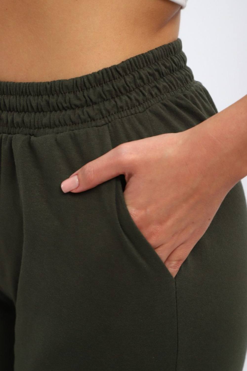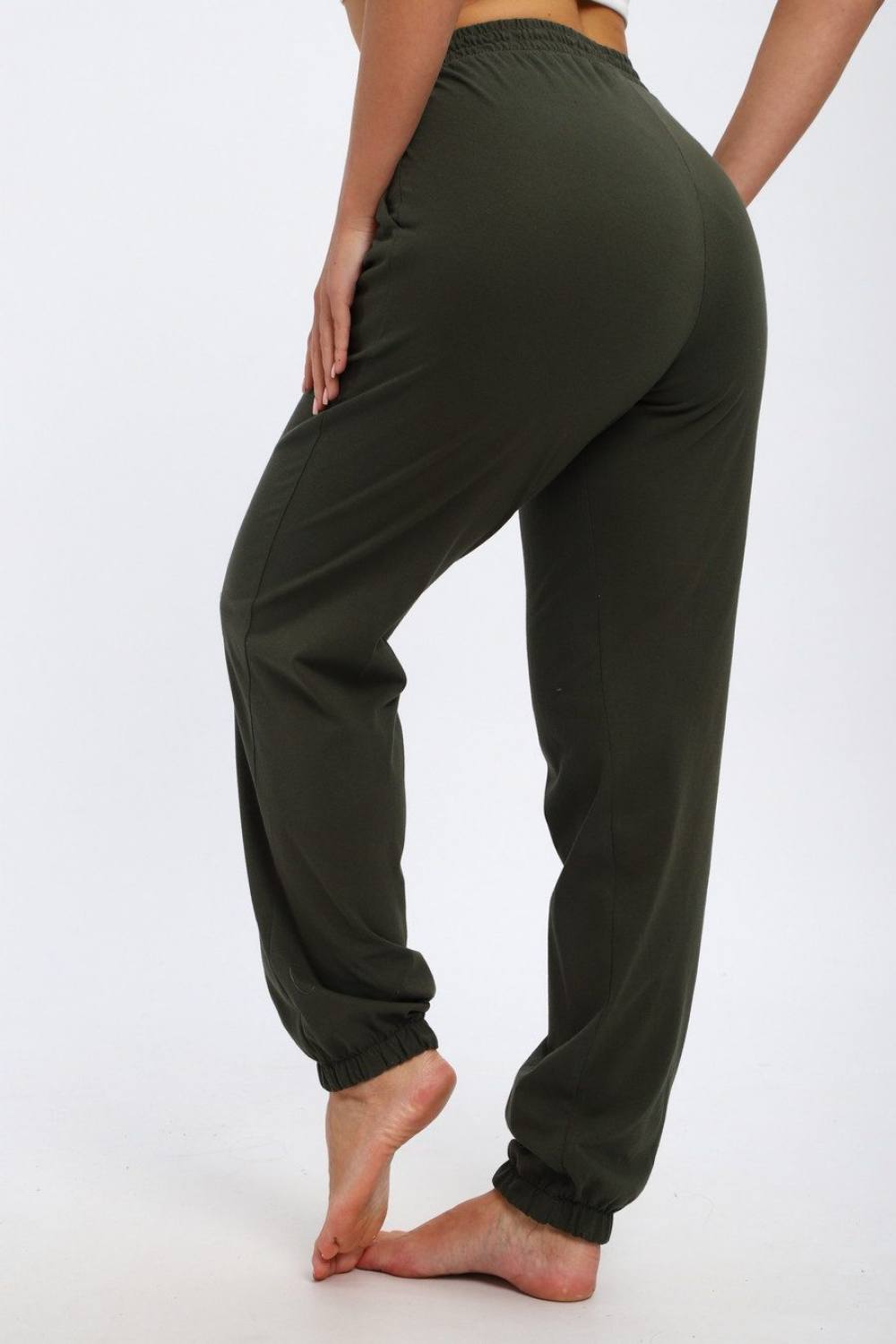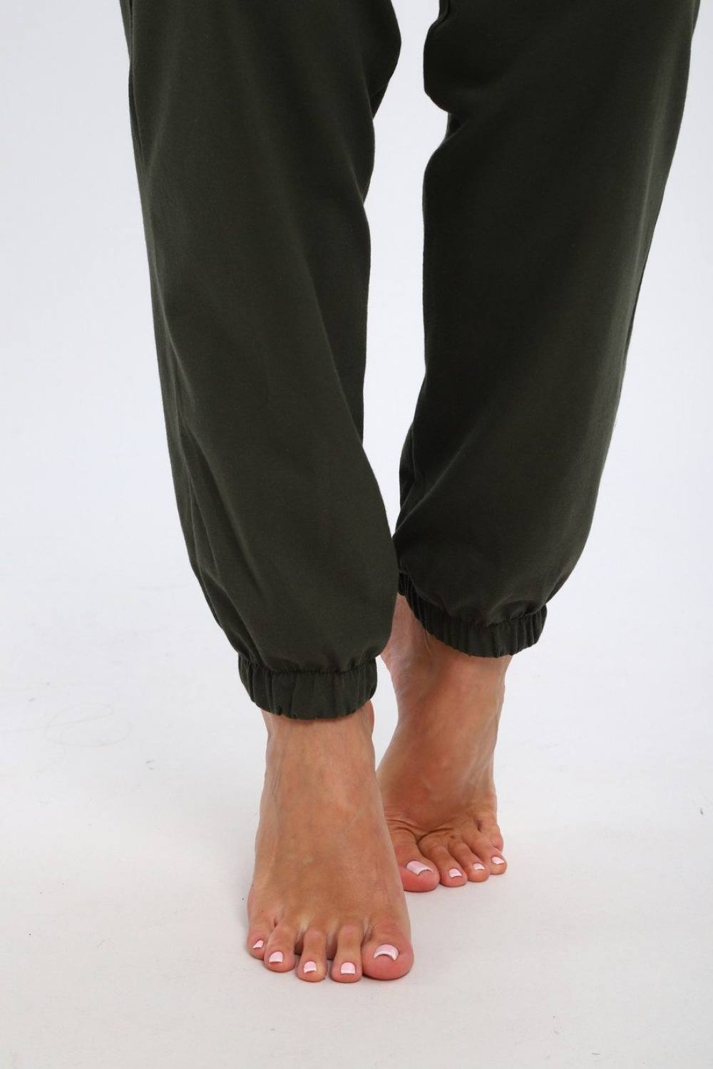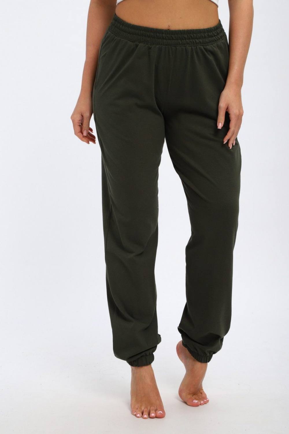 Брюки женские из кулирки на резинке хаки