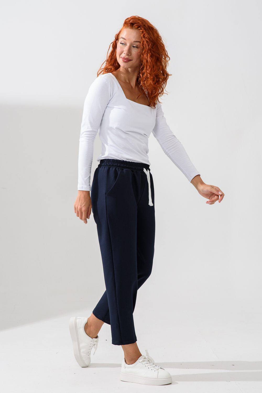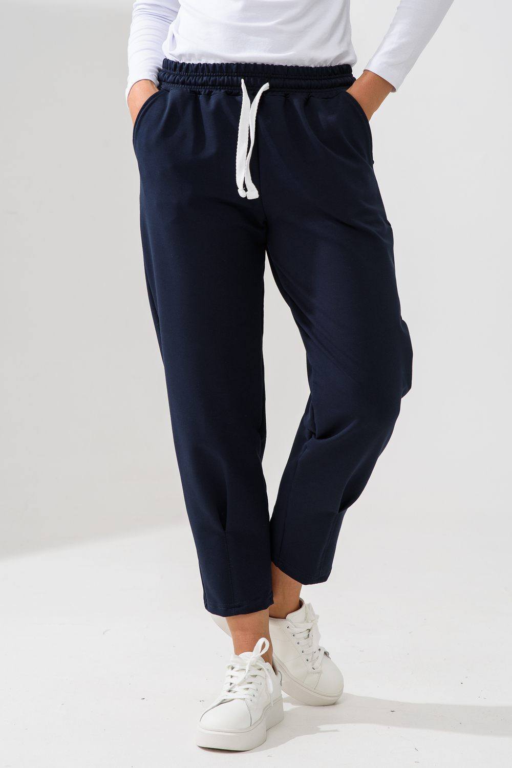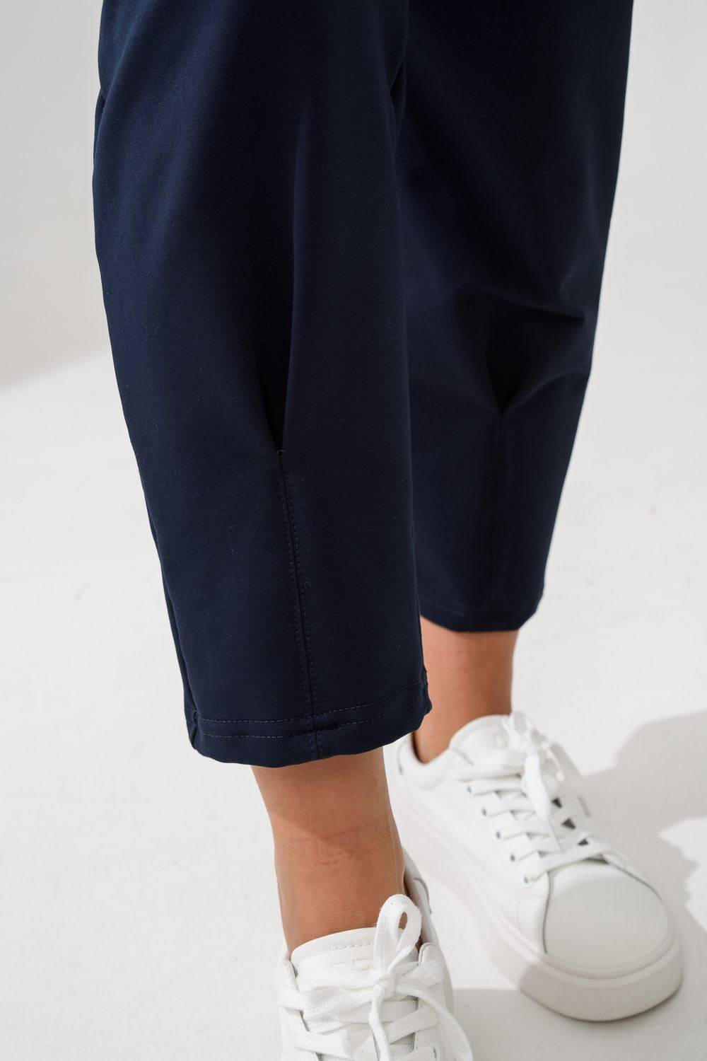 Брюки - бананы. Эластичный пояс с завязками для удобной посадки. Два глубоких боковых кармана. Защипы внизу штанин удлиняют ноги и создают женственный силуэт. Подходят всем. Широкая размерная линейка от 42-58. Для любого типа фигуры.