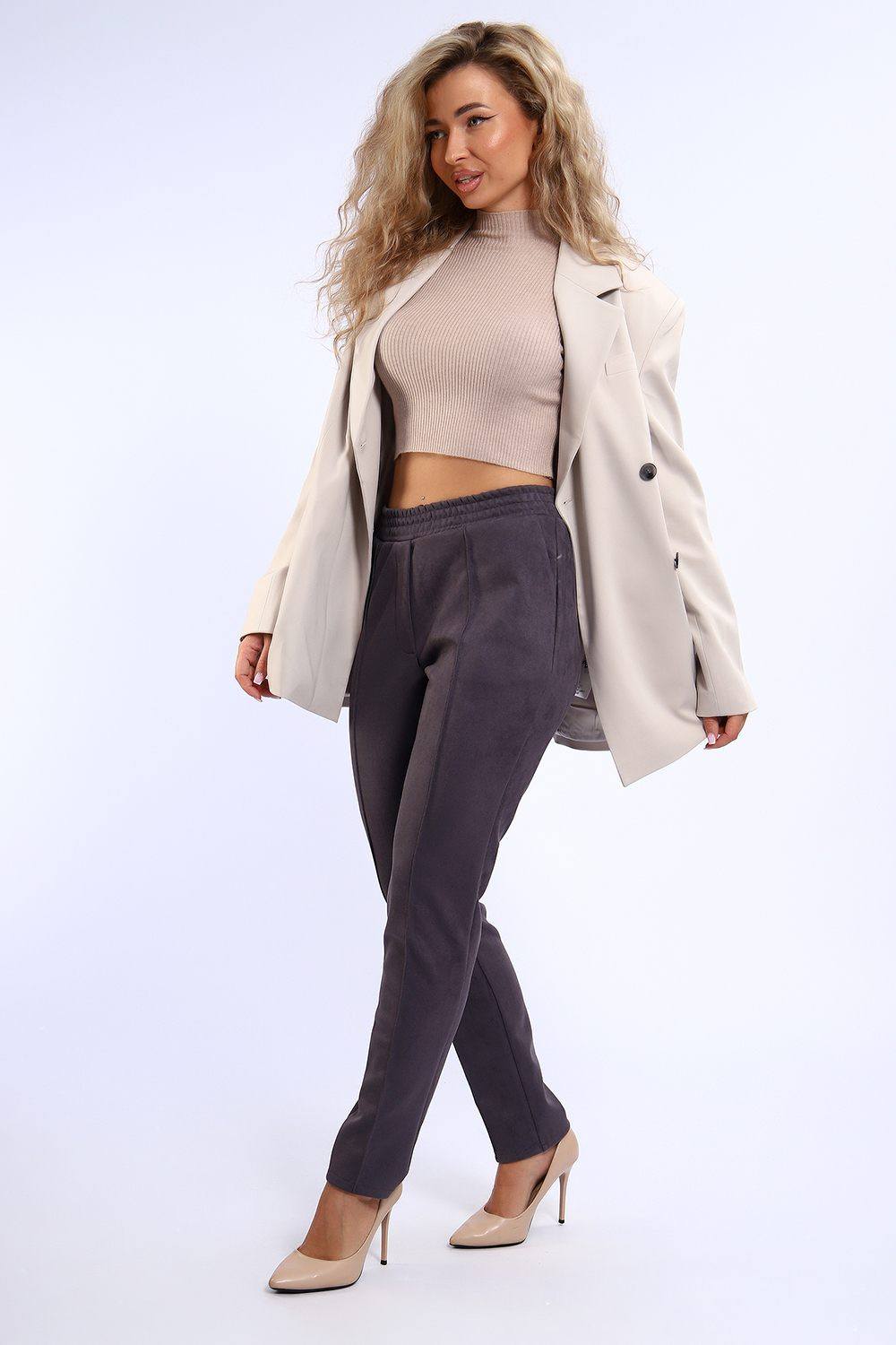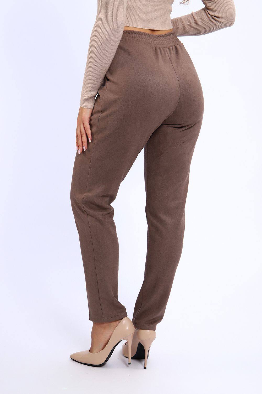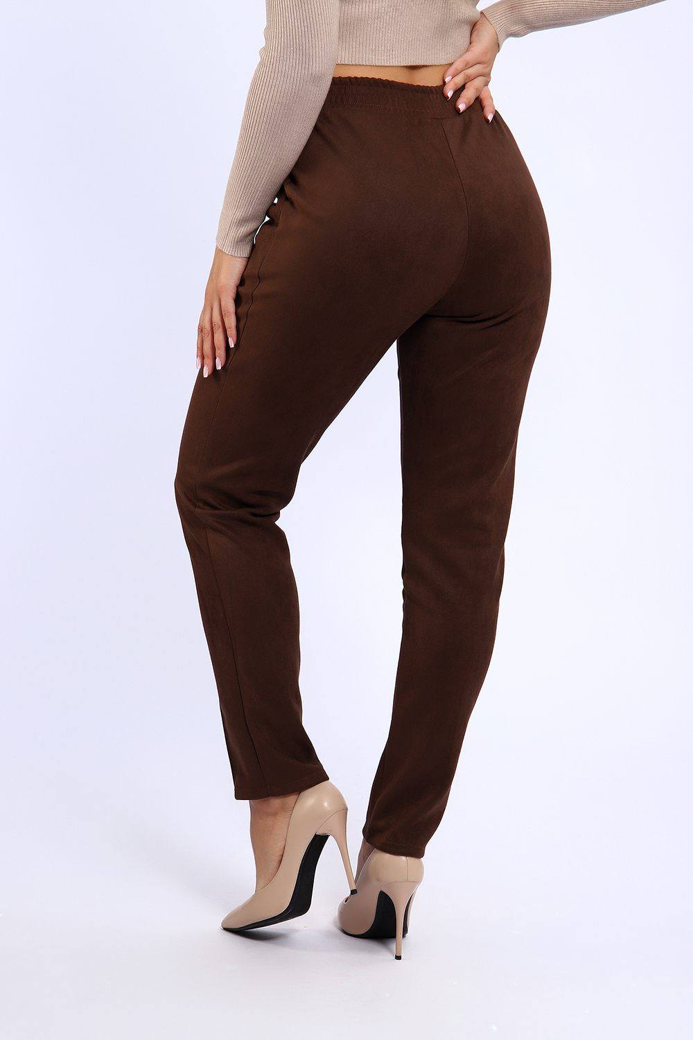 Удобные и практичные брюки из экозамши на все случаи жизни. Искуственая замша имеет приятную бархатистую поверхность, очень плотная, влагоустойчивая, хорошо тянется, проста в уходе. Брюки из этой ткани будут незаменимы в прохладное время года для прогулок и для офиса. Брюки прилегающего силуэта, средняя посадка, на передних половинках прострочены стрелки и обработана имитация гульфика. Удобный пояс на резинке, по бокам внутренние карманы. Брюки будут хорошо смотреться с обувью на каблуке и без каблука. Тем , кто желает более плотного прилегания по фигуре, советуем брать размер поменьше. В замерах обхват талии соответствует длине резинки в растянутом виде. Утюжить изделие лучше с изнанки или через ткань.