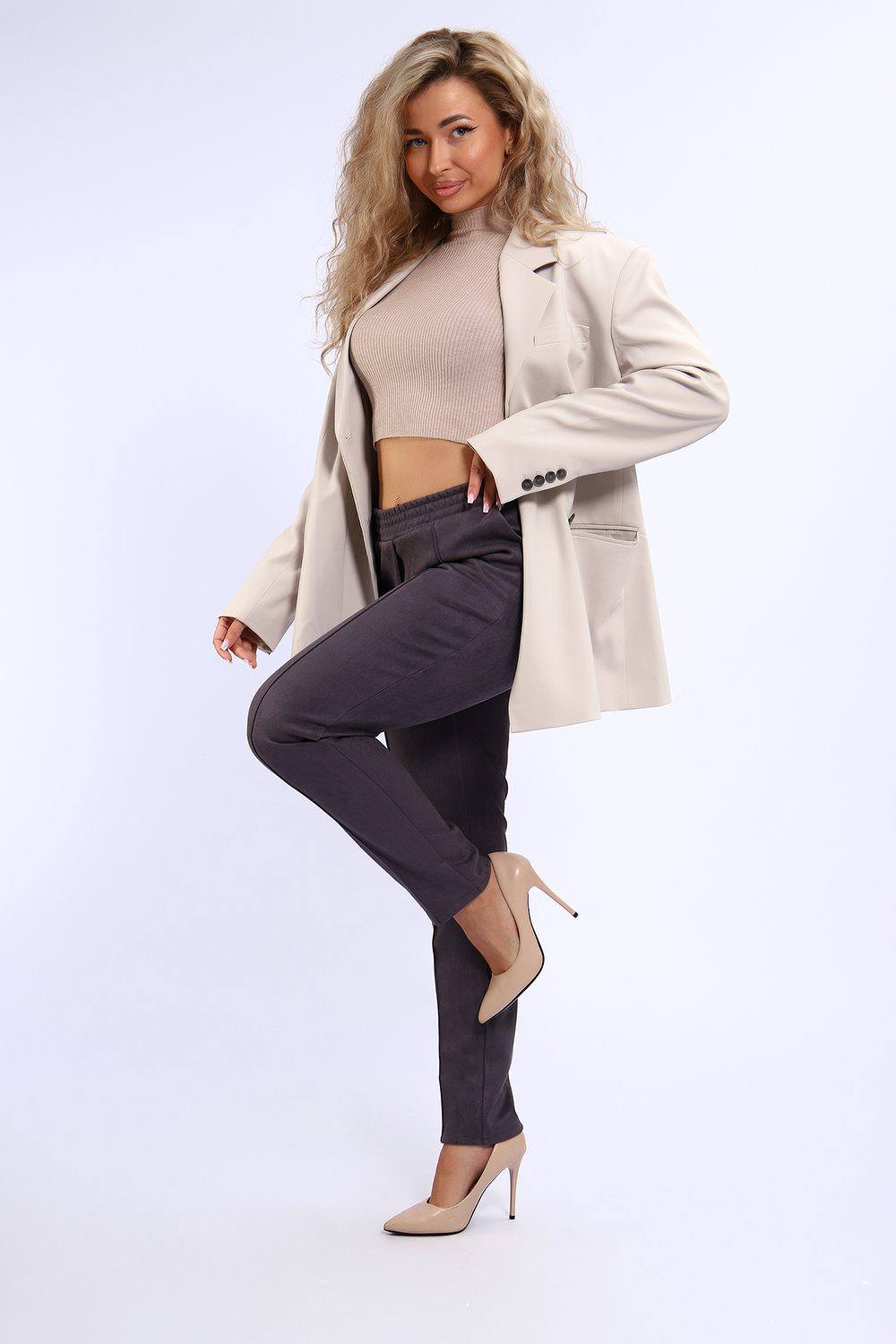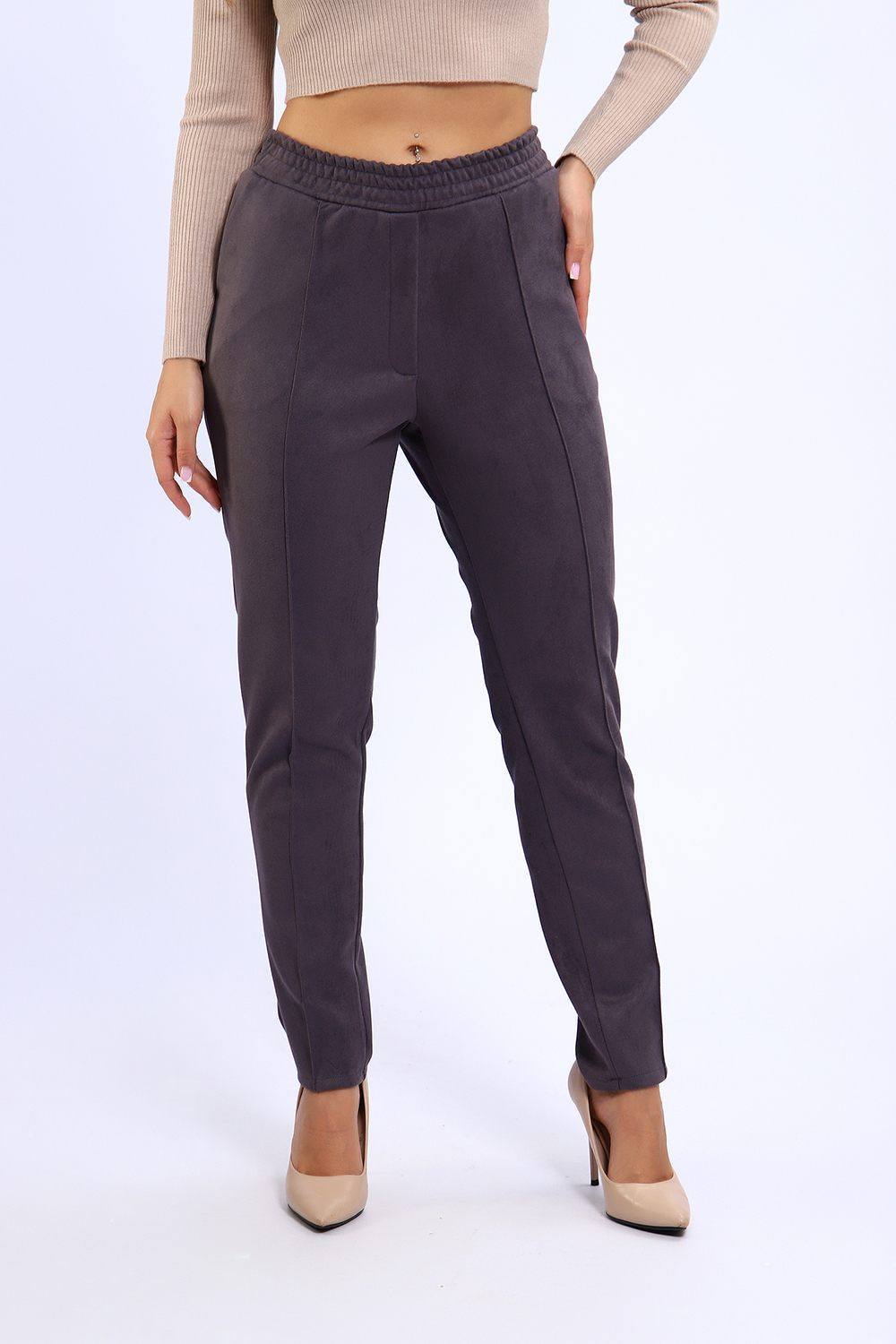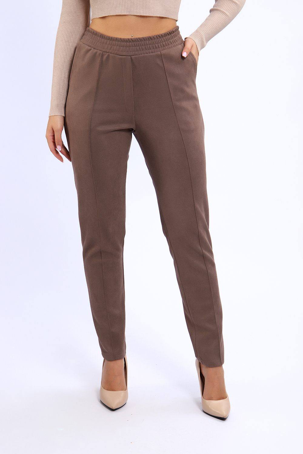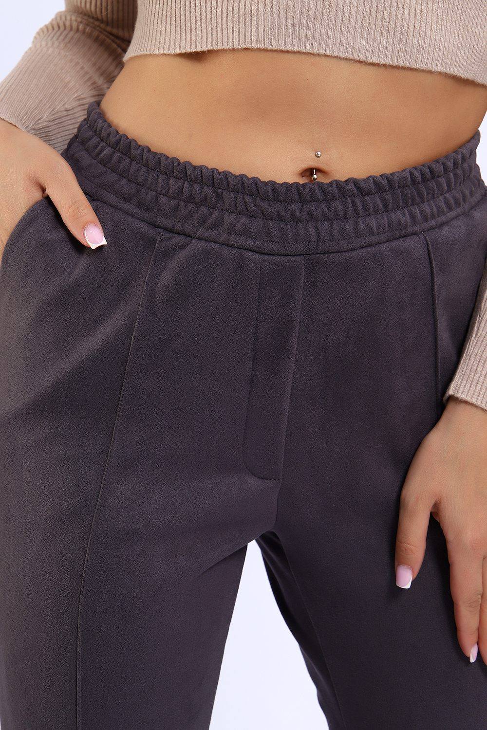Удобные и практичные брюки из экозамши на все случаи жизни. Искуственая замша имеет приятную бархатистую поверхность, очень плотная, влагоустойчивая, хорошо тянется, проста в уходе. Брюки из этой ткани будут незаменимы в прохладное время года для прогулок и для офиса. Брюки прилегающего силуэта, средняя посадка, на передних половинках прострочены стрелки и обработана имитация гульфика. Удобный пояс на резинке, по бокам внутренние карманы. Брюки будут хорошо смотреться с обувью на каблуке и без каблука. Тем , кто желает более плотного прилегания по фигуре, советуем брать размер поменьше. В замерах обхват талии соответствует длине резинки в растянутом виде. Утюжить изделие лучше с изнанки или через ткань.