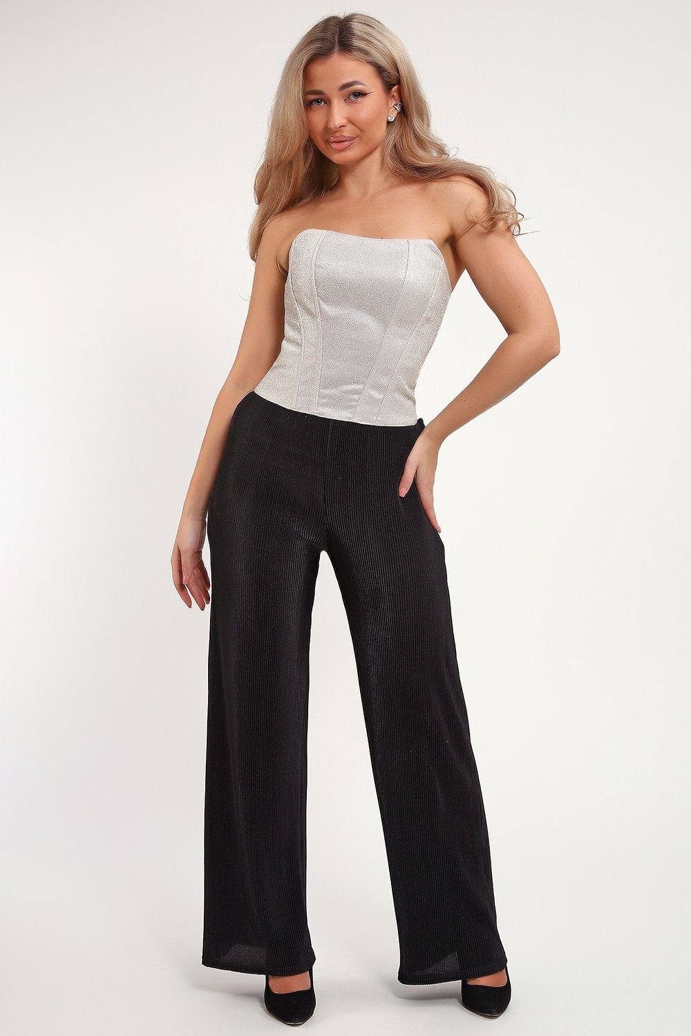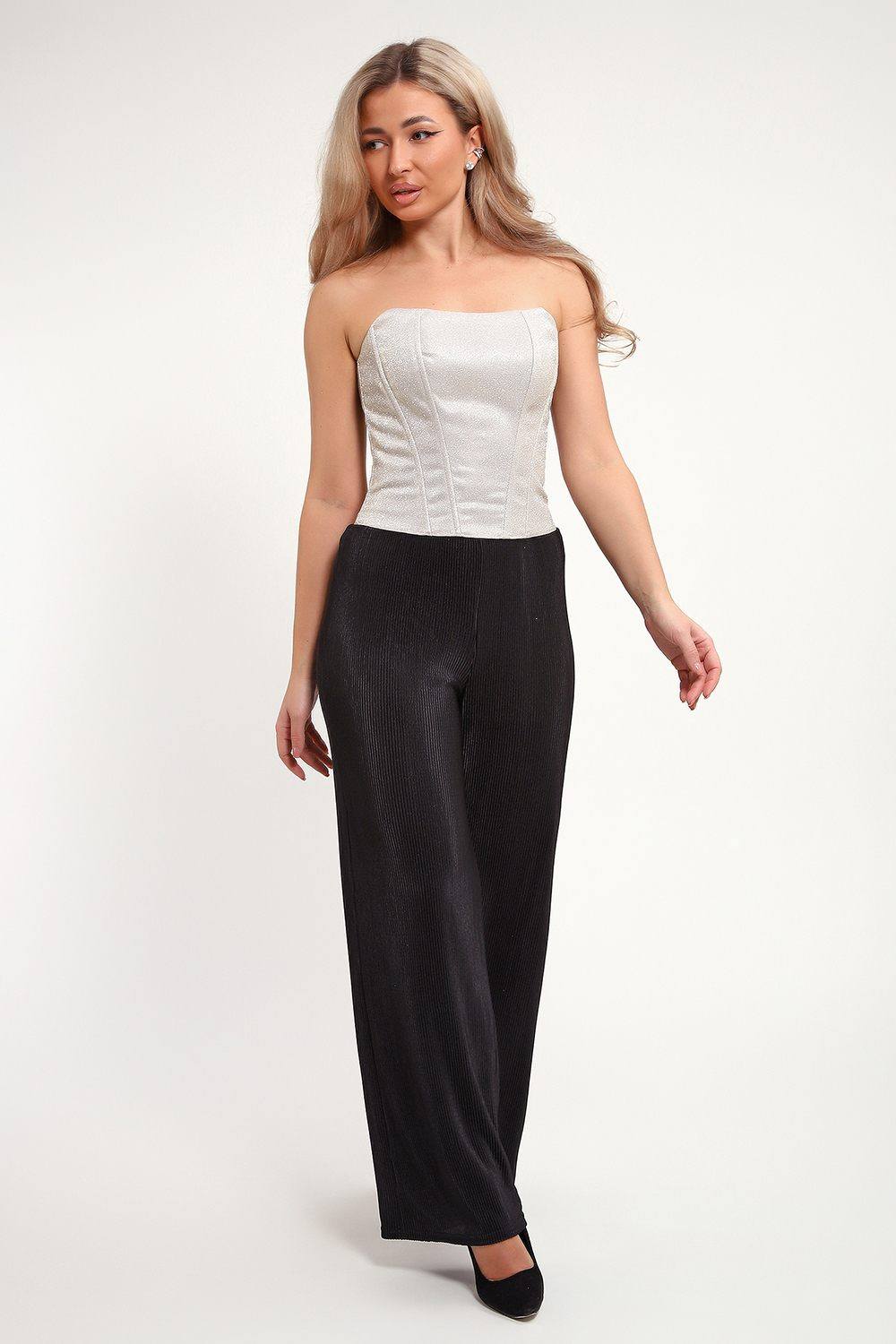 Модные широкие брюки палаццо стали классикой в современном мире моды. Свободный прямой крой брюк скрывает недостатки фигуры, обеспечивает комфорт и удобство при носке, подходит модницам любого роста. Изюминкой этих брюк является ткань - атлас гофре. Ткань имеет гофрированную структуру, приятна к телу, совершенно не мнется, хорошо тянется, но не деформируется. Легкая струящаяся ткань хорошо драпируется и имеет приятный блеск. Завышенная посадка по талии, удобный пояс на резинке. Брюки незаменимы в качестве повседневной одежды на работе и в офисе, а также для прогулки летом и как домашняя одежда. А если вы подберете к ним нарядную блузку, то будете отлично выглядеть на празднике или вечеринке.