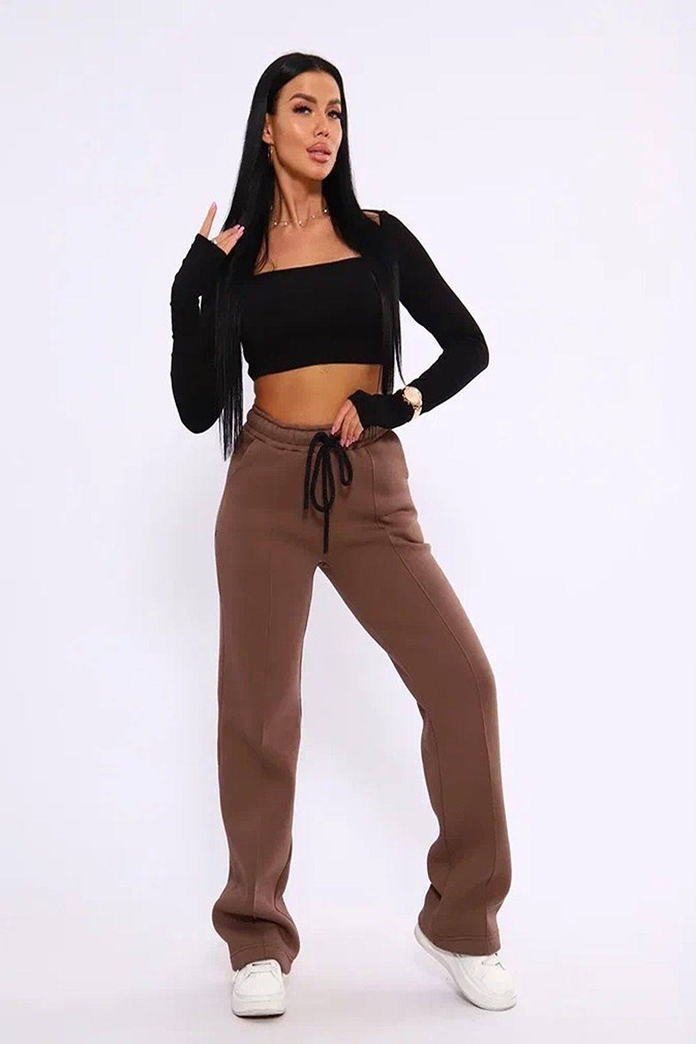 Предлагаем Вашему вниманию новую модель: женские брюки из трикотажа средней плотности с теплым начесом . Изделие из такого материала поддерживает оптимальную температуру и не сковывает движения, а за удобную посадку на талии отвечает притачной пояс с регулировочным декоративным шнуром. Модель декорирована отделочными строчками на передних половинках брюк. Для ключей, телефона и прочих мелочей предусмотрены боковые карманы. Такая модель брюк - незаменимая вещь в гардеробе и девушки и женщины. Добавление полиэстера к хлопковому волокну в состав трикотажа, придает ему особую эластичность и стойкость к воздействию ультрафиолета. Эти брюки идеально подходят для повседневного использования, для прогулок и отдыха на свежем воздухе, для путешествий. В наших брюках Вам будет максимально комфортно в холодное время года. Носите с удовольствием! Модель представлена широким размерным рядом с 46 р по 60 р.