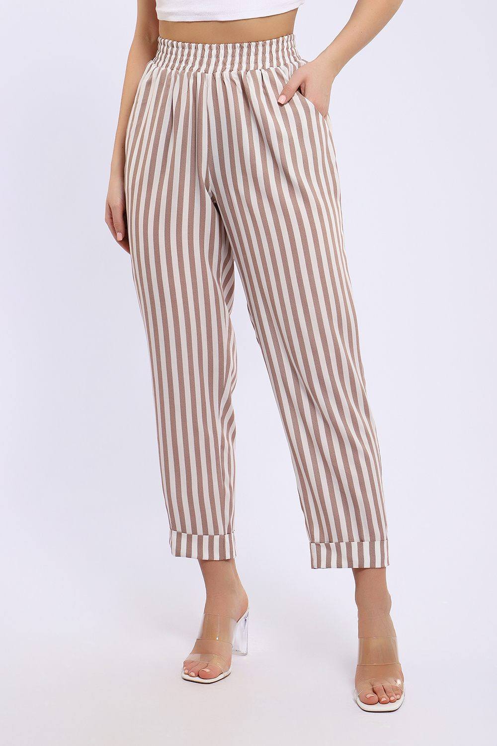 Летние женские брюки из тонкой воздухопроницаемой ткани штапель. Брюки свободного кроя, слегка зауженные к низу, имеют полуприлегающий силуэт. Нетугая резинка пояса позволяет регулировать посадку так, как вам удобно. Ткань штапель, состоящая из 100% вискозы не тянется, поэтому рекомендуем заказывать на размер больше того, который соответствует вашим меркам.
