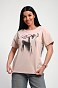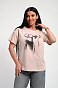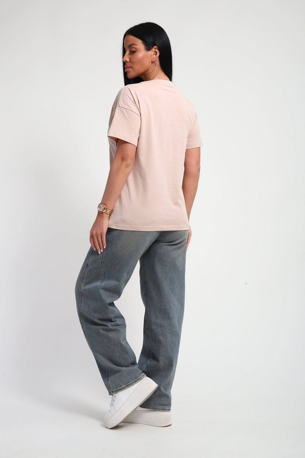 Футболка женская из гладкокрашенного трикотажа, хлопок 100%. Прямого силуэта, свободного облегания. горловина круглой формы. Рукав короткий. Низ изделия прямой. На полочке объемный принт, шелкография.