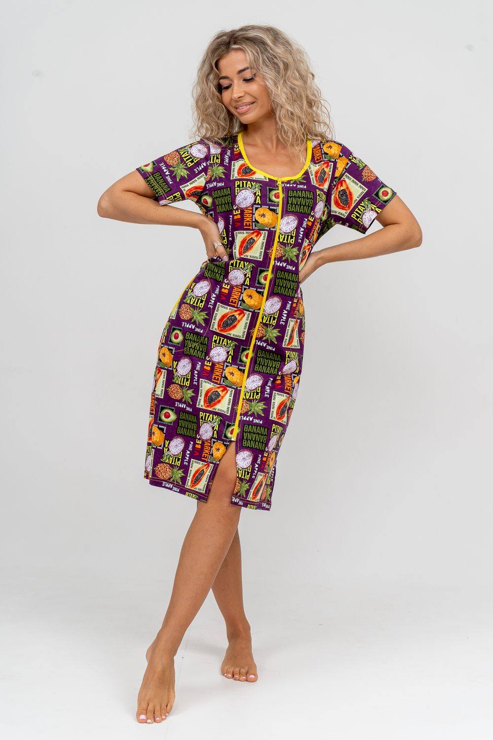 Модный женственный халатик выполнен из 100% хлопчатобумажной ткани, что обеспечивает максимальный комфорт при ношении. Отличается мягкостью и приятной на ощупь текстурой. Материал прекрасно дышит. Носить такой халатик Вы сможете как летом, так и в любой другой сезон. Надёжный замок на молнии сохраняет свои свойства в течении всего времени использования. Женственный вырез и 2 боковых кармана добавляют образу шарм и делают изделие удобным и практичным. Изысканный халатик подойдёт для любого типа фигуры. Отличная модель для дома, для роддома, после родов, для кухонных дел и хозяйственной уборки, для дачи. И конечно идеально после душа, сауны, бани и ванной. А так же будет замечательным подарком на любой праздник: 14 февраля, день рождения, 8 марта. Рекомендуется стирать в деликатном режиме 30 °С. Это поможет избежать деформации и сохранить яркость цвета.