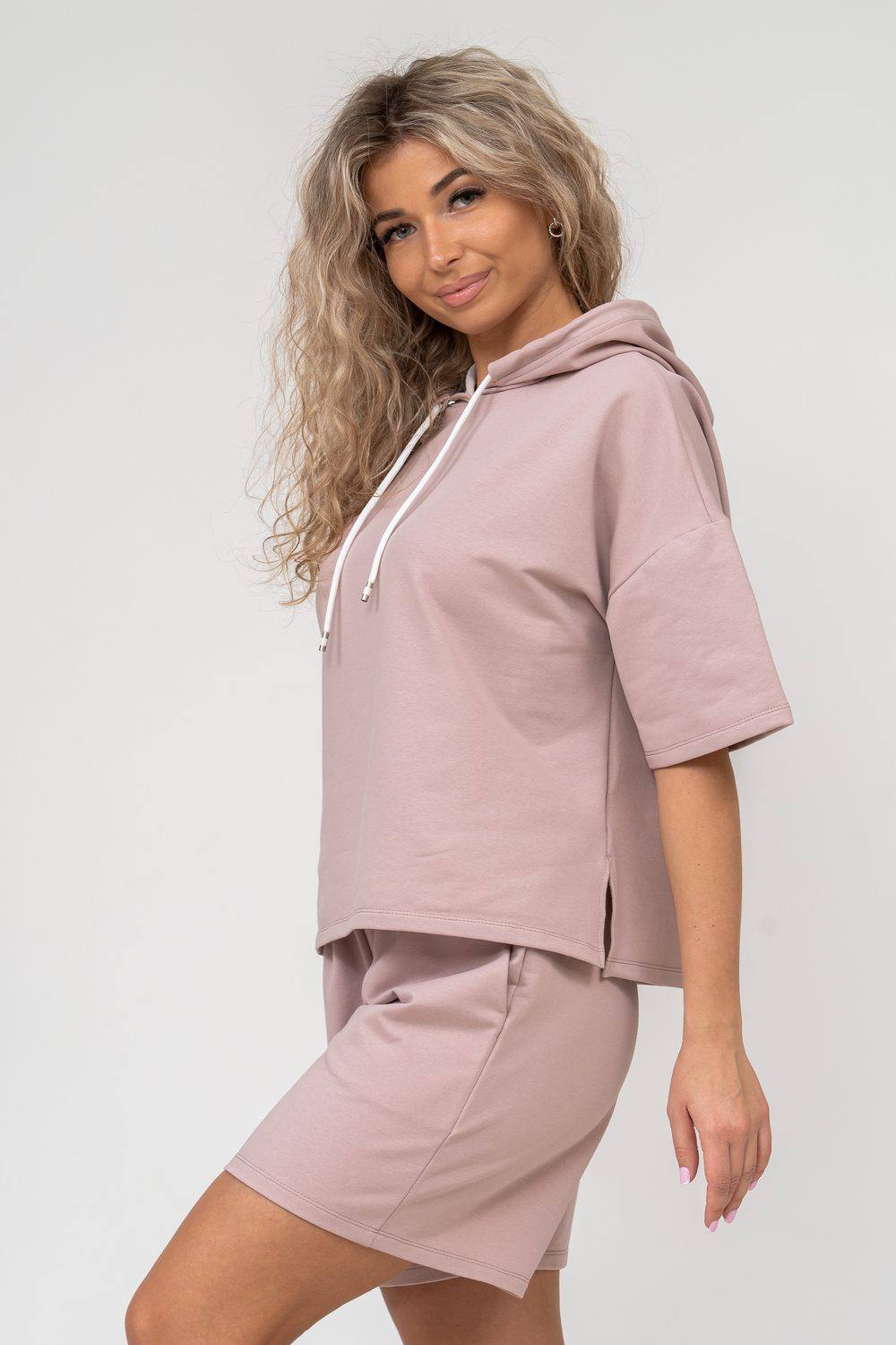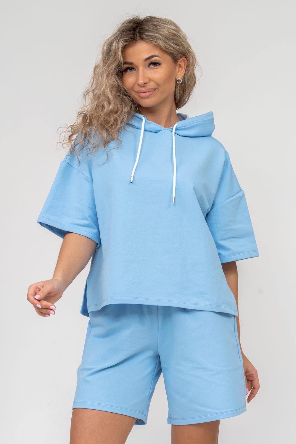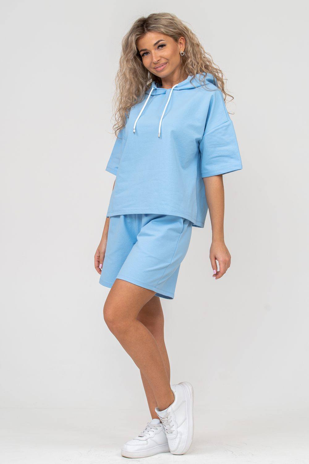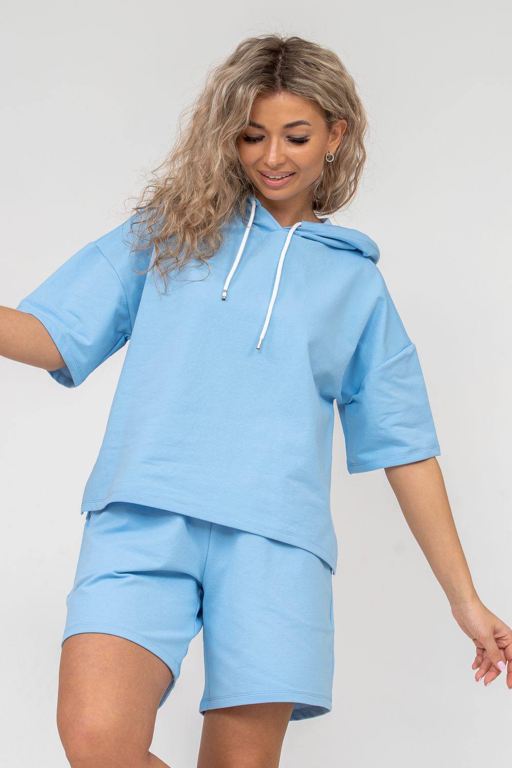 Женский костюм 2-ка выполнен из футера высокого качества с хлопком и небольшим добавлением полиэстера и лайкры, что позволяет изделию не скатываться и оставлять идеальный внешний вид на долгое время. Костюм состоит из толстовки и шорт. Толстовка с капюшоном и шнурком. Линия плеча спущена, рукав укороченный, по бокам имеются небольшие разрезы. Свободный крой прекрасно будет смотреться на дамах с любыми формами. Костюм такого плана представлен в широкой размерной сетке, что позволяет выбрать его как девушке, так и женщине. Однотонный костюм модных расцветок будет удачным выбором для поездок в отпуск, на пикник, для активного отдыха и прогулок по городу. Будет гармонично сочетаться как с кроссовками, так и с туфлями, балетками или босоножками. Материал: футер 2-х нитка