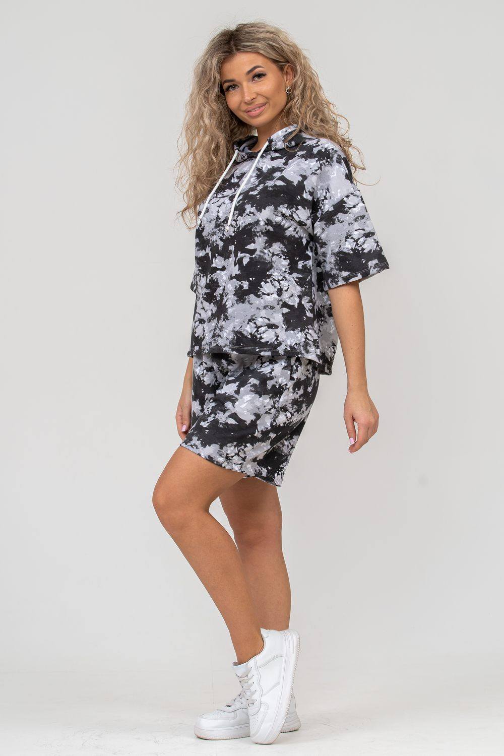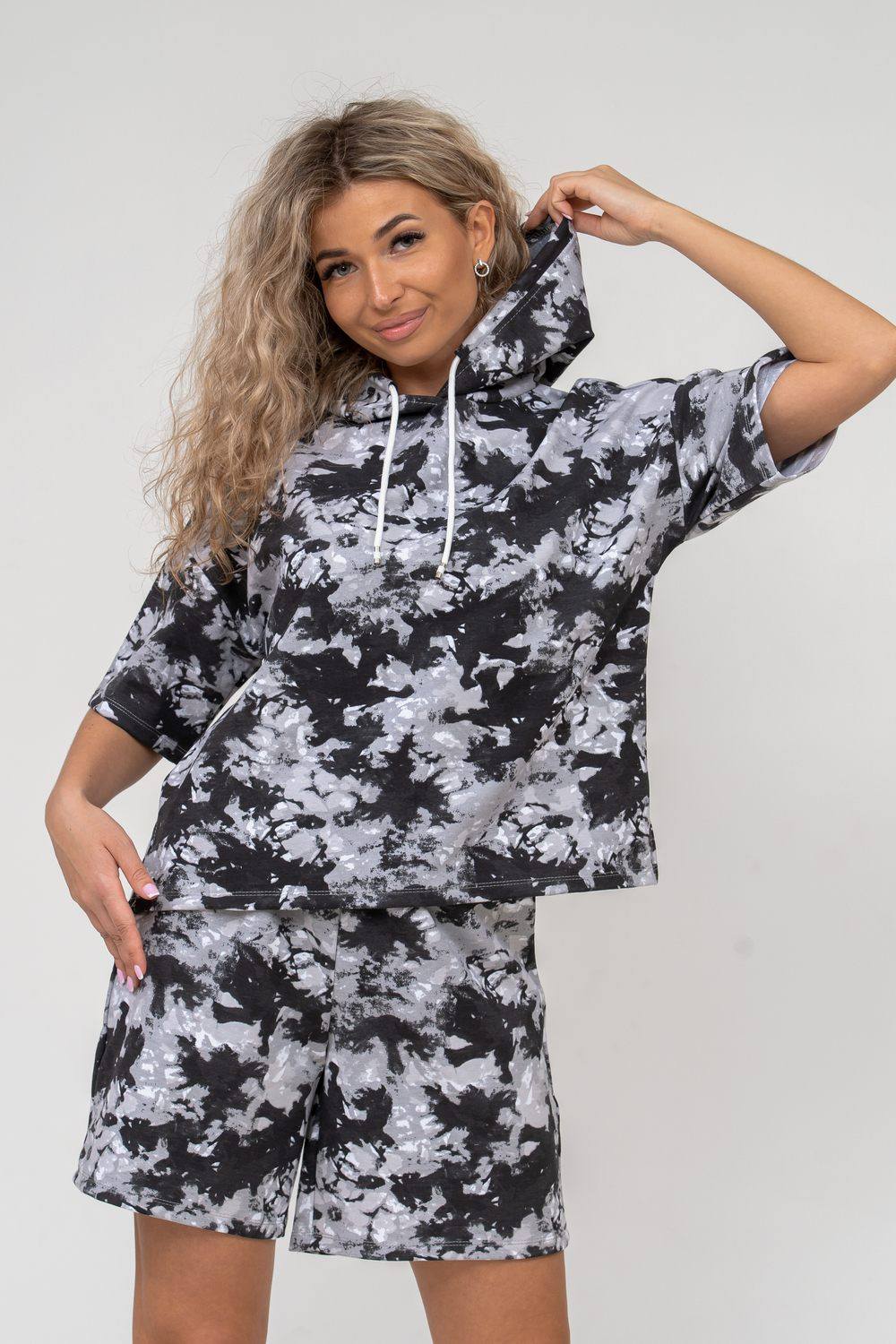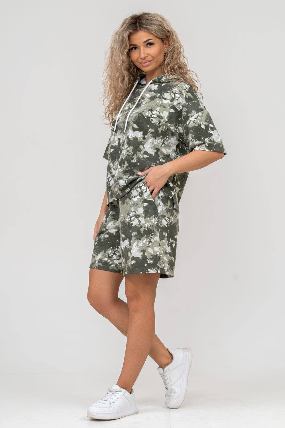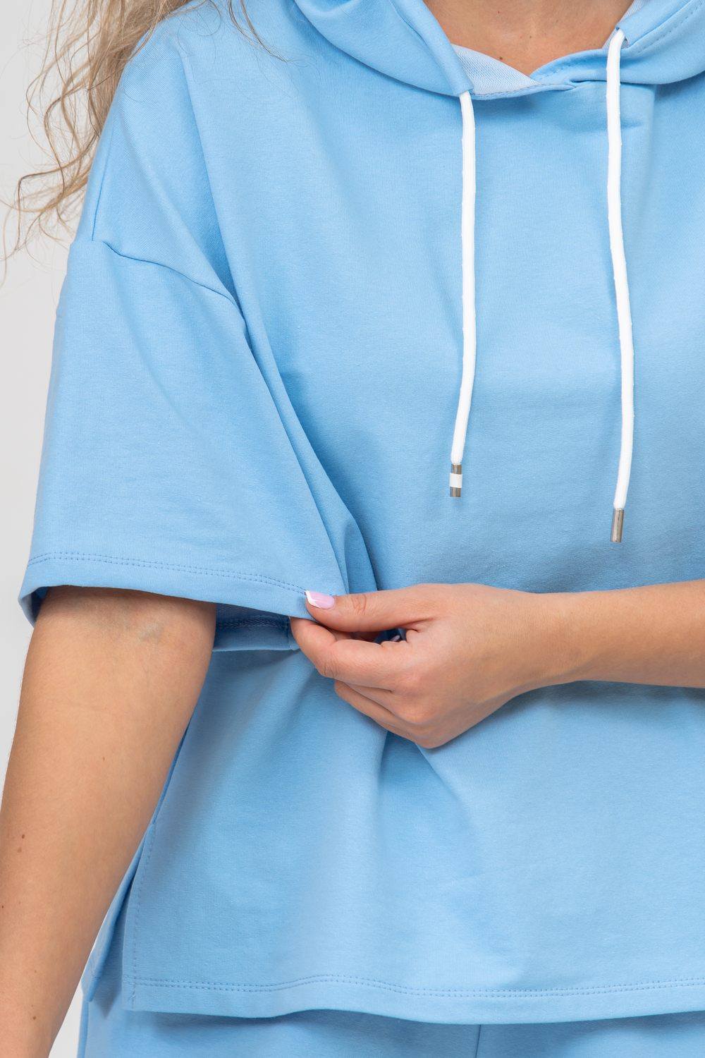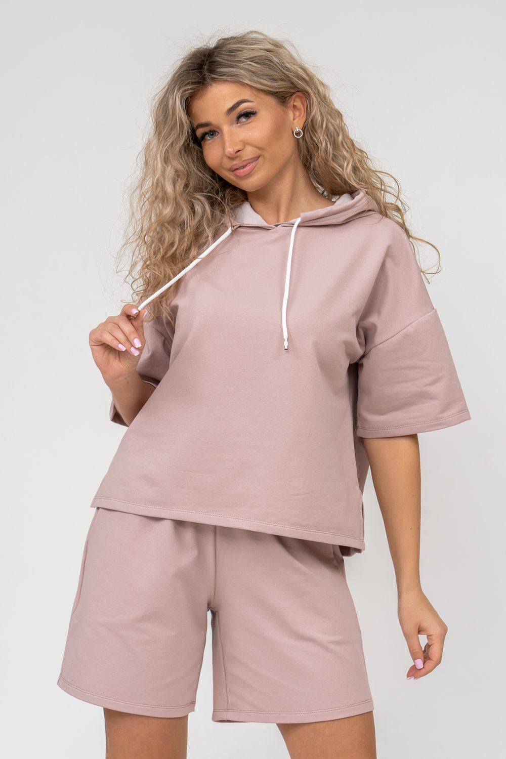 Женский костюм 2-ка выполнен из футера высокого качества с хлопком и небольшим добавлением полиэстера и лайкры, что позволяет изделию не скатываться и оставлять идеальный внешний вид на долгое время. Костюм состоит из толстовки и шорт. Толстовка с капюшоном и шнурком. Линия плеча спущена, рукав укороченный, по бокам имеются небольшие разрезы. Свободный крой прекрасно будет смотреться на дамах с любыми формами. Костюм такого плана представлен в широкой размерной сетке, что позволяет выбрать его как девушке, так и женщине. Однотонный костюм модных расцветок будет удачным выбором для поездок в отпуск, на пикник, для активного отдыха и прогулок по городу. Будет гармонично сочетаться как с кроссовками, так и с туфлями, балетками или босоножками. Материал: футер 2-х нитка