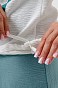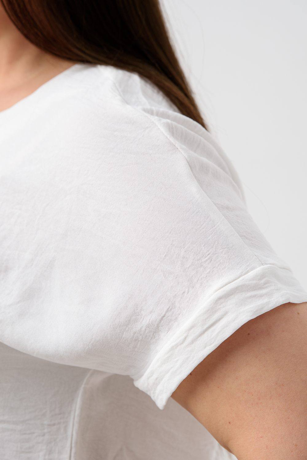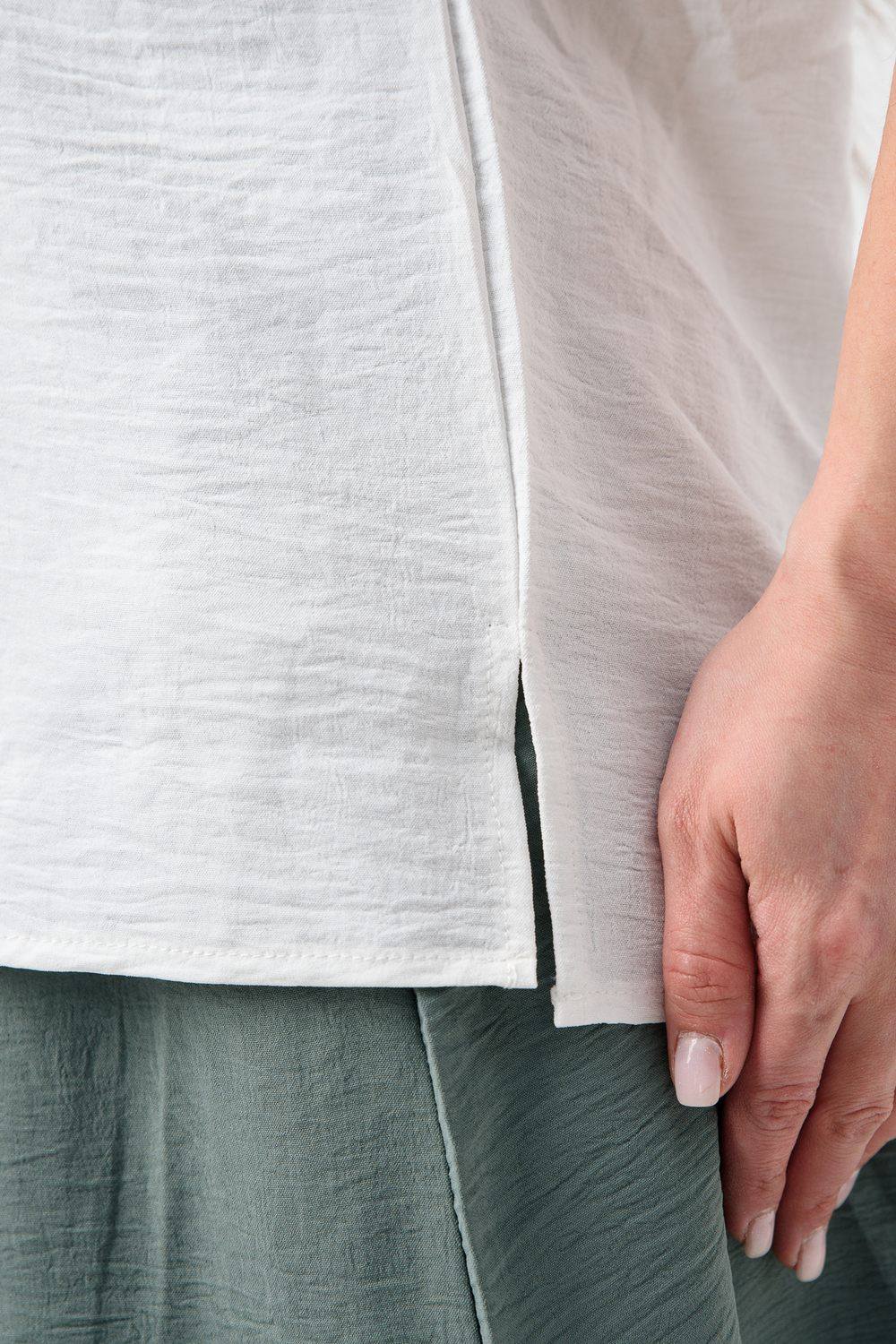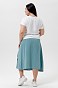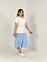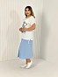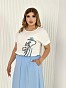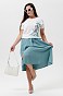 Женская двойка прямого силуэта. Верх комплекта в белом цвете с цветным принтом, короткий цельнокроеный рукав, низ футболки имеет свойство затягиваться, поэтому ее можно носить спущенную на юбку, а можно затянуть и оставить над ней, что подчеркнет вашу талию. Низ - свободная юбка двух цветов, с двумя разрезами снизу. Костюм повседневный и удобный, из легкой ткани сингапур, что хорошо для жаркого лета.