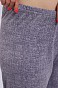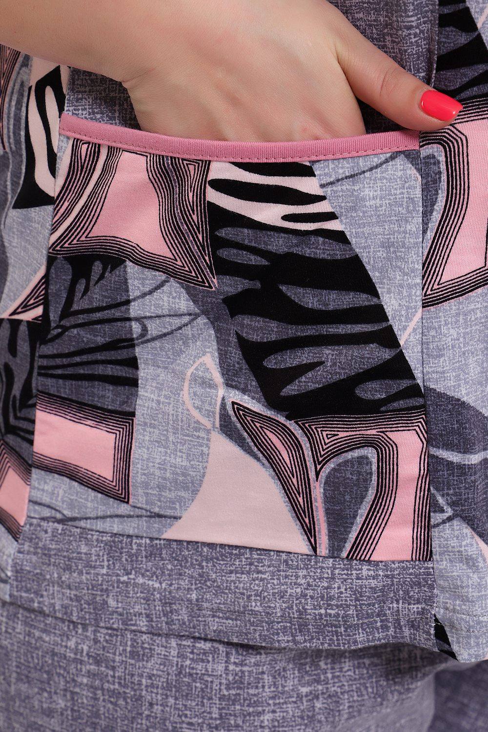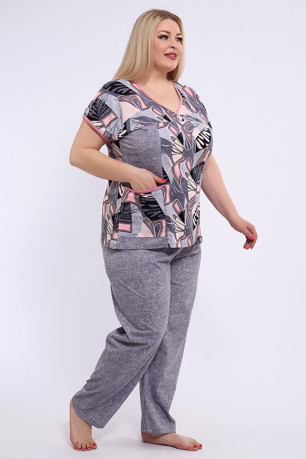 Костюм состоит из блузки и брюк. Брюки полной длины с притачной резинкой, низ изделия обработан швом в подгибку. Блузка со спущенной проймой, по бокам два функциональных кармана.