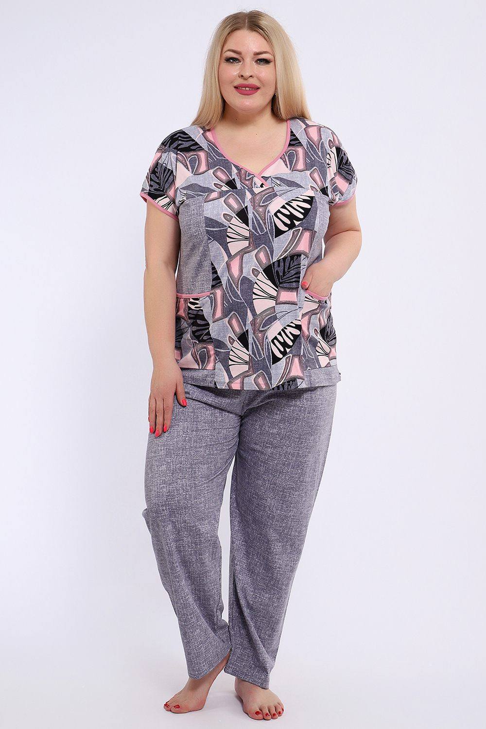 Костюм состоит из блузки и брюк. Брюки полной длины с притачной резинкой, низ изделия обработан швом в подгибку. Блузка со спущенной проймой, по бокам два функциональных кармана.