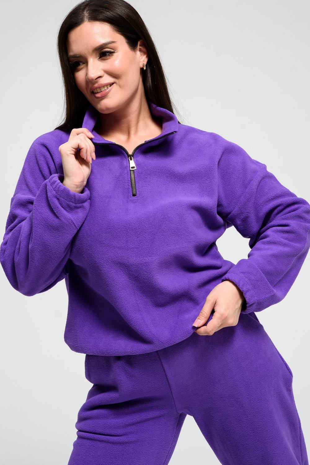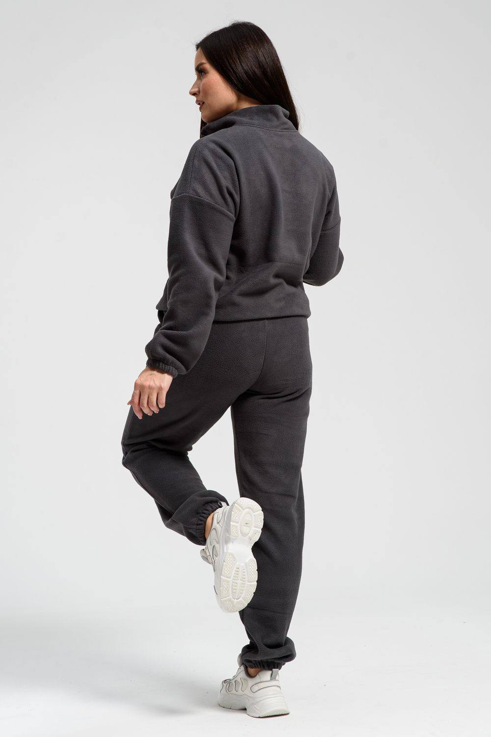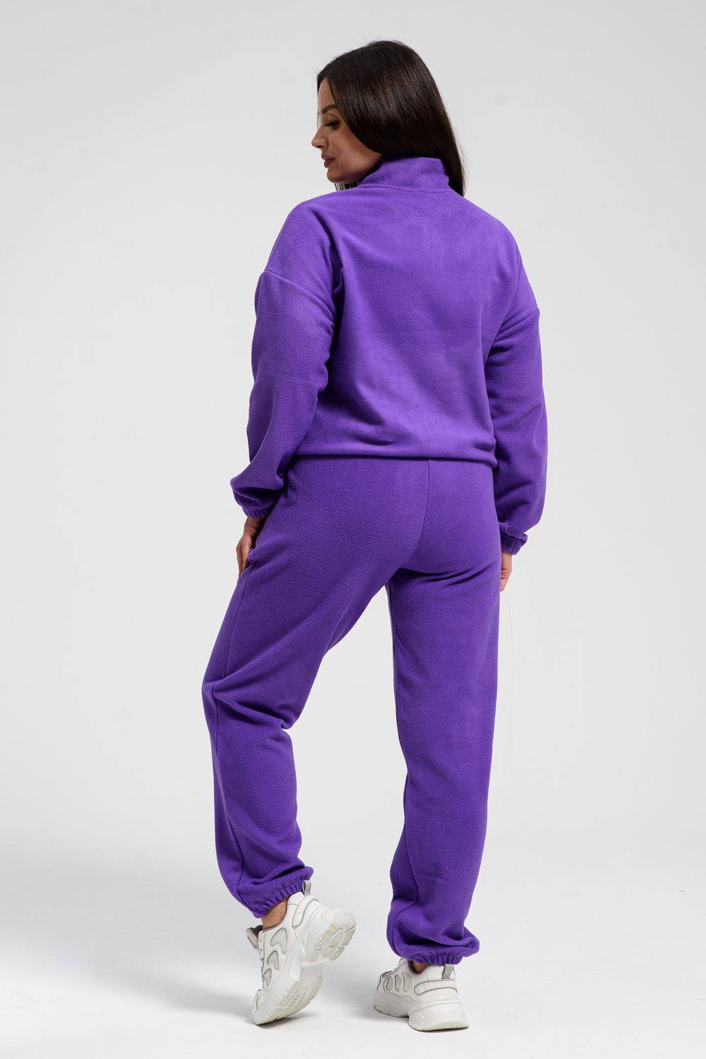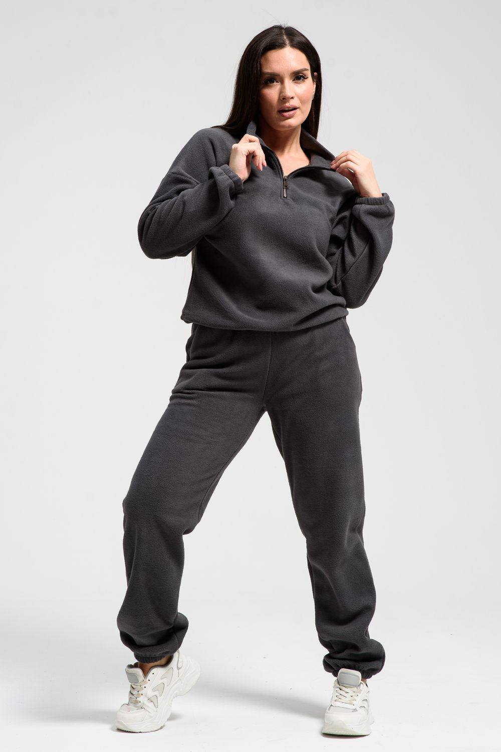 Женский спортивный костюм из теплой ткани - флис, прекрасный выбор на прохладную погоду, Верх - толстовка с горлом-стойкой и короткой молнией, понизу и на манжетах резинка, низ - брюки с карманами, пояс и низ штанов на резинке. Двойка подойдет для прогулок и дома.