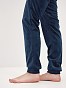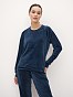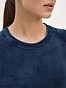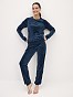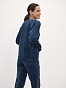 Костюм с брюками из однотонного велюра на трикотажной основе (Х/Б 95%, Лайкра 5%). Свитшот прямой свободного кроя с длинными рукавами реглан на манжетах. Круглый вырез горловины с притачной бейкой и отстрочкой по линии втачивания.Низ свитшота посажен на пояс. Брюки прямые, свободного кроя, на манжетах. Пояс притачной с широкой резинкой внутри, простроченный на многоигольной специализированной поясной машине. По бокам расположены внутренние брючные карманы с отрезным бочком и наклонными входами.