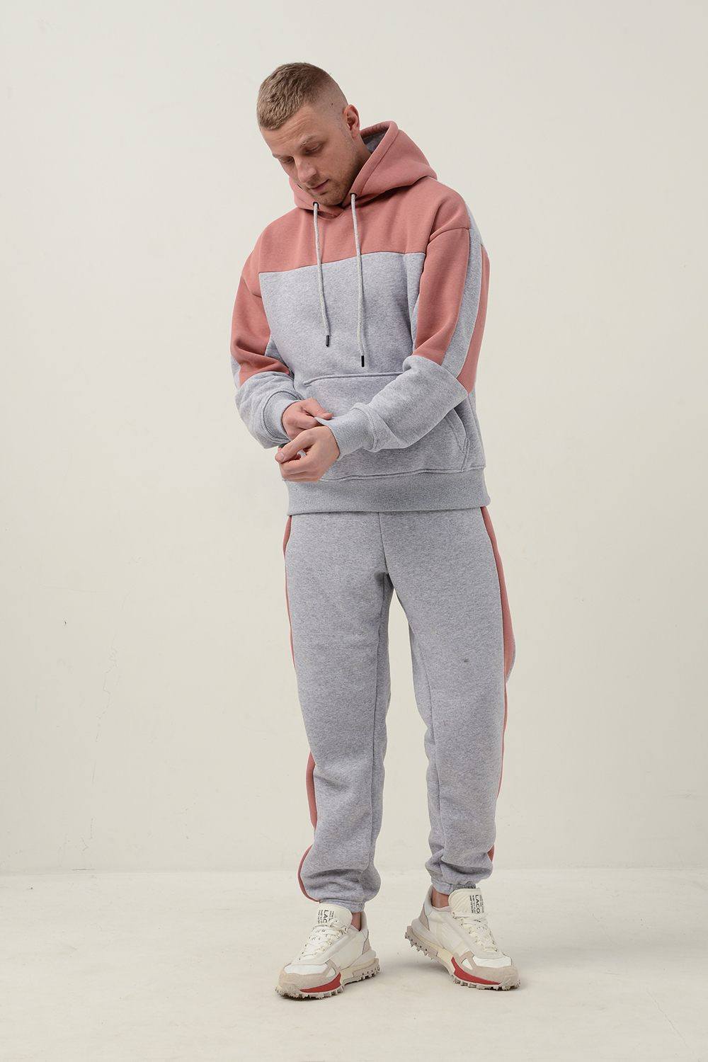 Стильный костюм из футера 3-х нитки. Костюм выполнен из мягкого хлопка с лицевой стороны и начесом с изнанки. Костюм состоит из двух вещей: худи с капюшоном с карманом кенгуру и брюки джоггер на резинке с прорезными карманами.