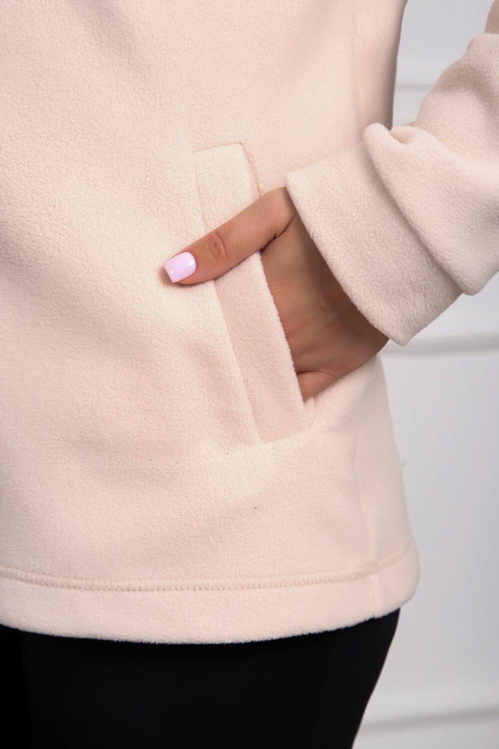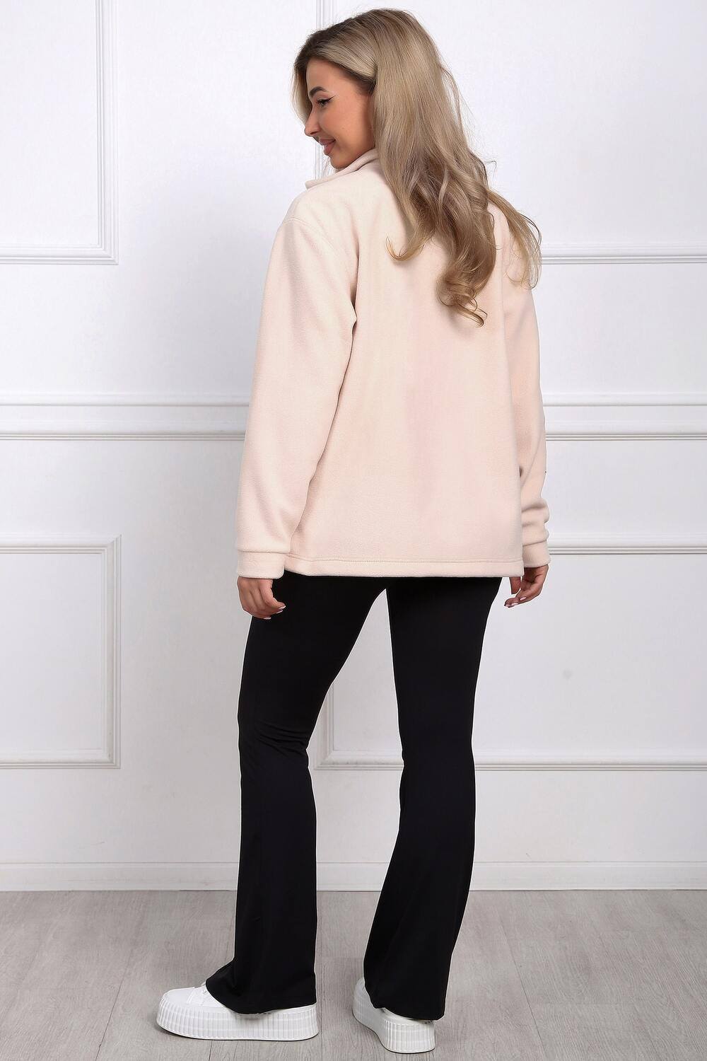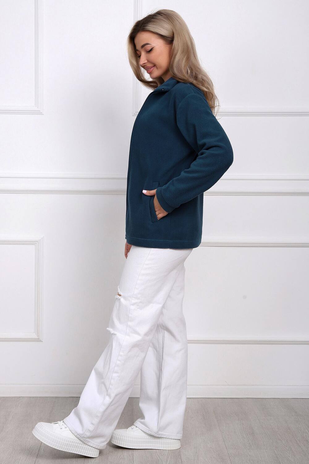 Куртка женская из флиса. Силуэт прямой. Длинна до середины бедра. Воротник стойка. Карман листочка. Рукав втачной, на манжете. Линия плеч чуть спущена. Застежка на тесьму молнию. Отделкой служат отделочные строчки с застилом.