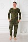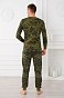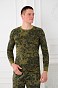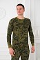 Лонгслив мужской хлопчатобумажный из трикотажа футер 2-х нитка. Ворот круглый, рукав втачной, силуэт облегающий. Манжеты и отделка горловины из однотонного эластичного трикотажа. Расцветка - камуфляж.