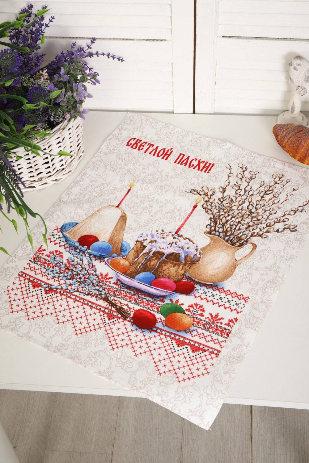 Набор из трех кухонных полотенец размером 60*48 см. Выполнены из прочного хлопчатобумажного полотна - рогожка. Отлично впитывают влагу, сохраняют цвет и форму после стирки. Каждое полотенце с индивидуальным рисунком, посвященным светлому празднику Пасхи Христовой. Порадуйте себя и своих близких приятным подарком на праздник!