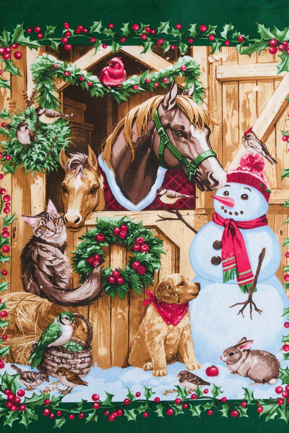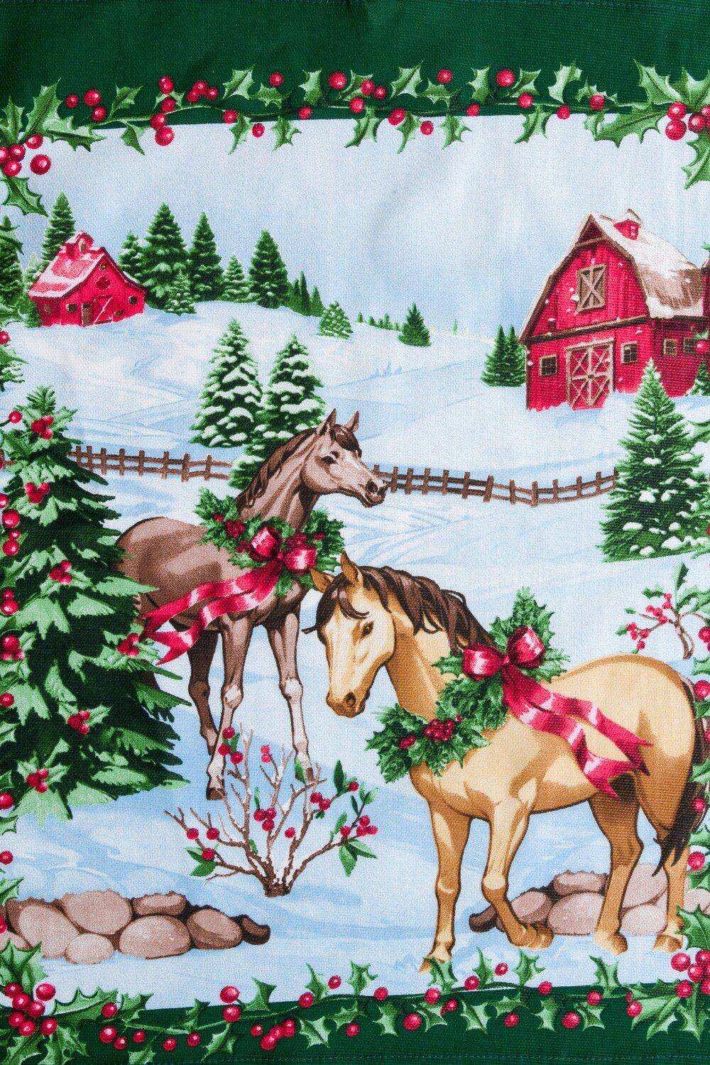 Праздничный Дизайн: Полотенца выполнены в насыщенном зеленом цвете, который ассоциируется с природой, свежестью и, конечно же, с Новым годом. Изящные изображения лошадок – символа 2026 года – в сочетании с зимней атрибутикой (снежинки, еловые ветки, морозные узоры) создают атмосферу сказки и уюта.