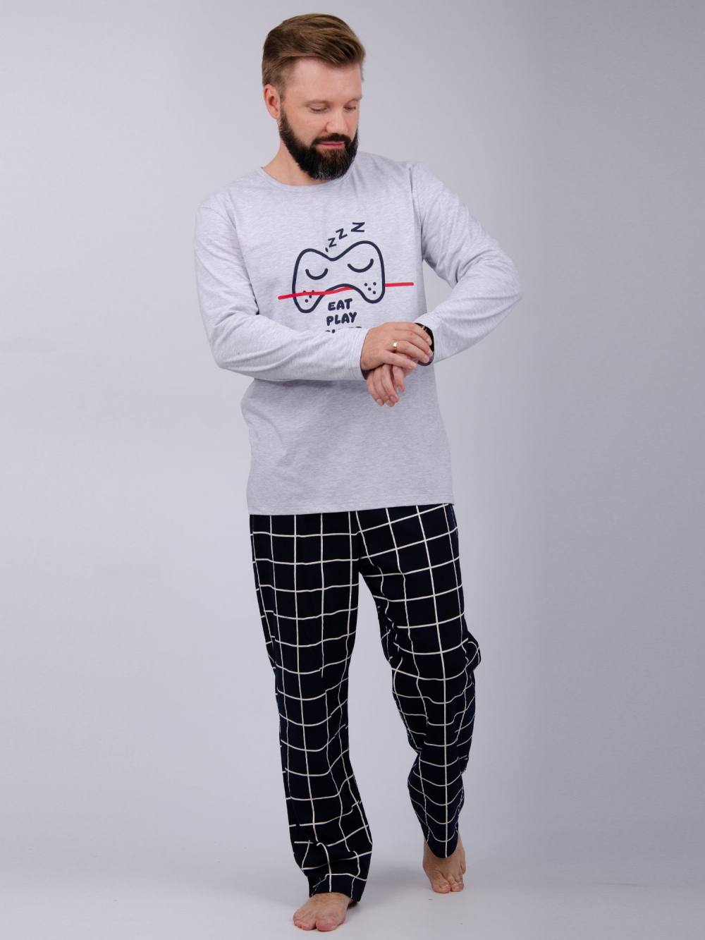 Пижама мужская лонгслив +брюки "Стэнли", трикотаж Кулирка