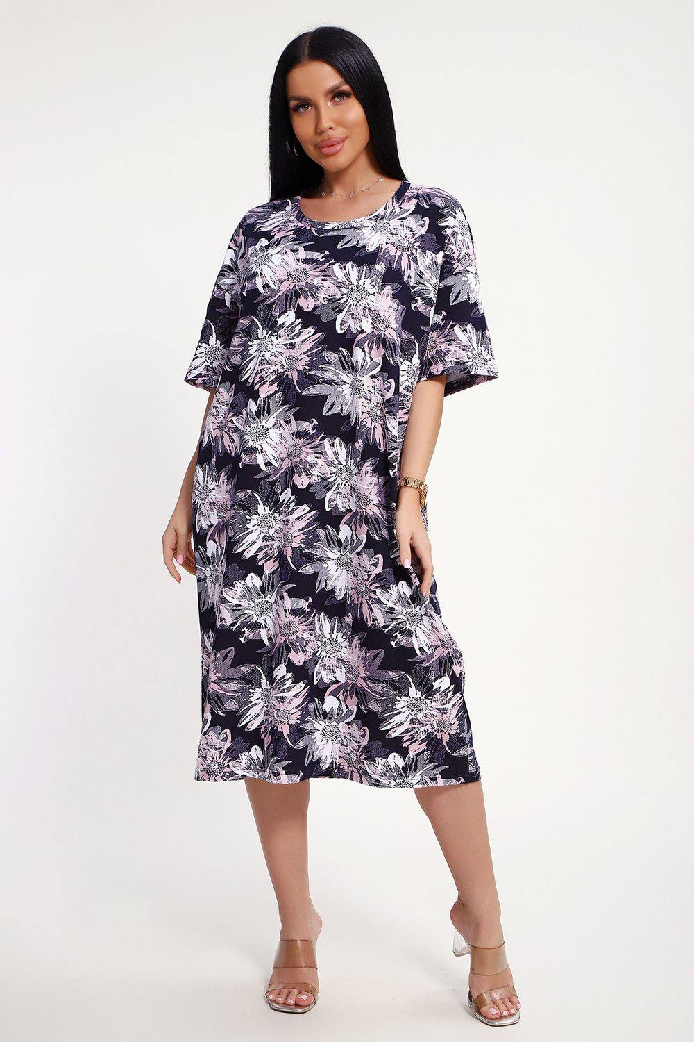Легкое летнее платье-туника свободного покроя