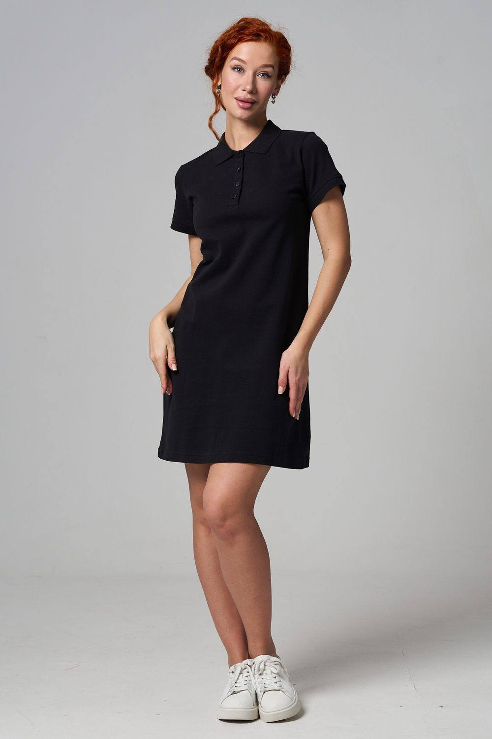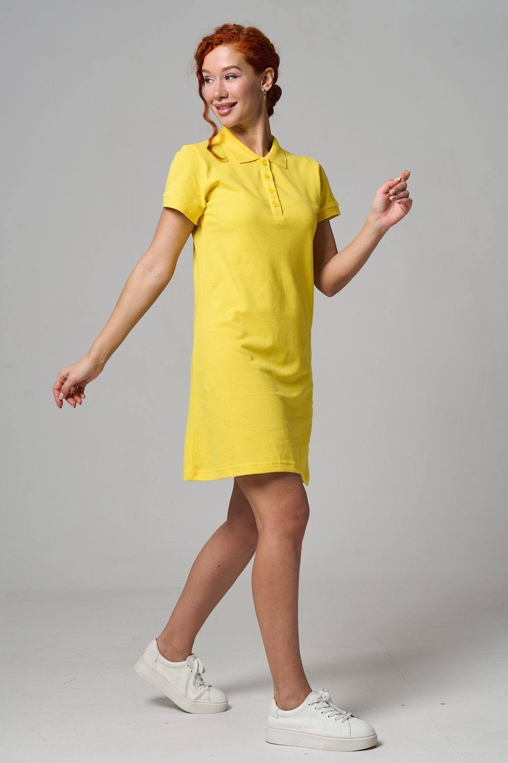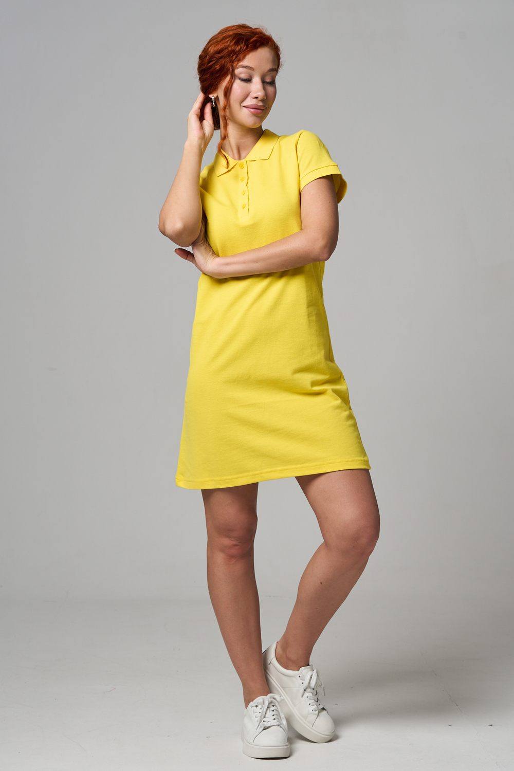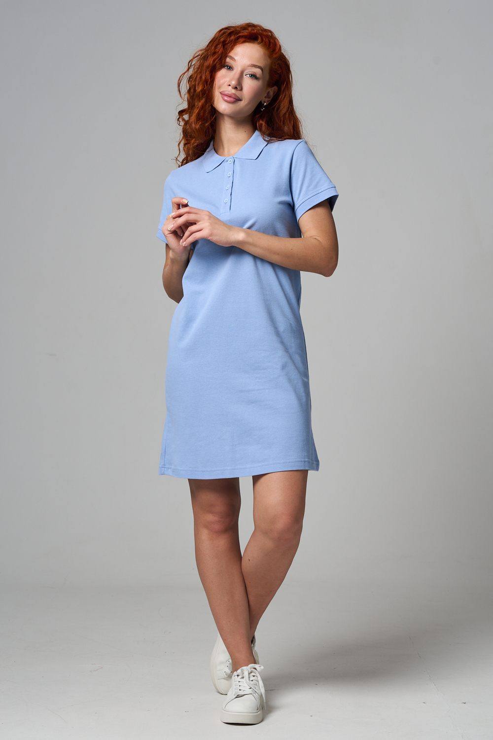 Отличный вариант для жаркого лета - модное платье-поло. Платье имеет отложной ворот и короткий рукав. Кроме того, вверху имеются акцентные пуговицы в цвет платья. Комфортная длина чуть выше колена и прямой крой делает это платье универсальным. Стильное и модное платье подойдет женщинам и девушкам разных возрастов. Хлопок обладает свойствами воздухопроницаемости, что так необходимо в жаркую весеннюю или летнюю погоду. Это изделие прекрасно сочетается как со спортивной обувью, так с классическими туфлями и балетками. На более прохладную погоду можно создавать многослойные образы, сочетая платья с другой одеждой. Это отличный вариант на повседневную основу на работу в офис, прогулки или учебу. Благодаря достаточному свободному не обтягивающему прилеганию в области талии оно является максимально удобным и комфортным.
