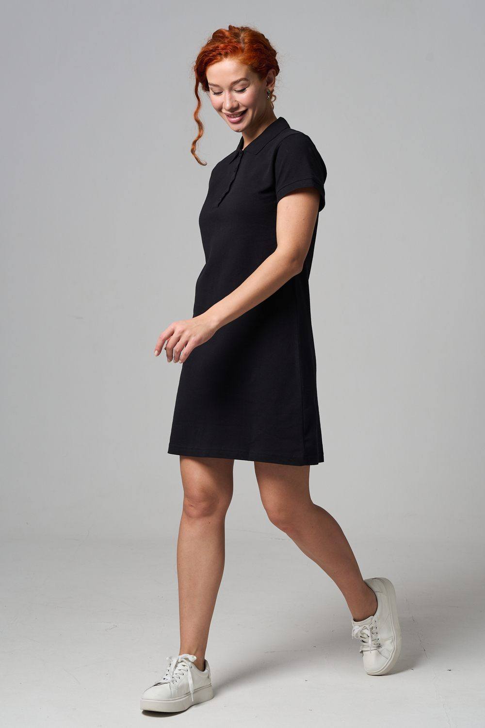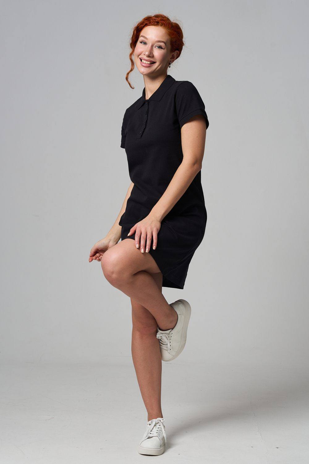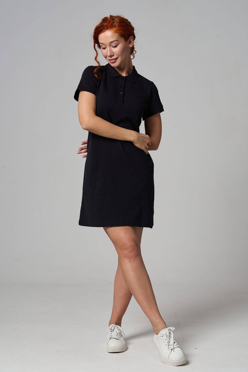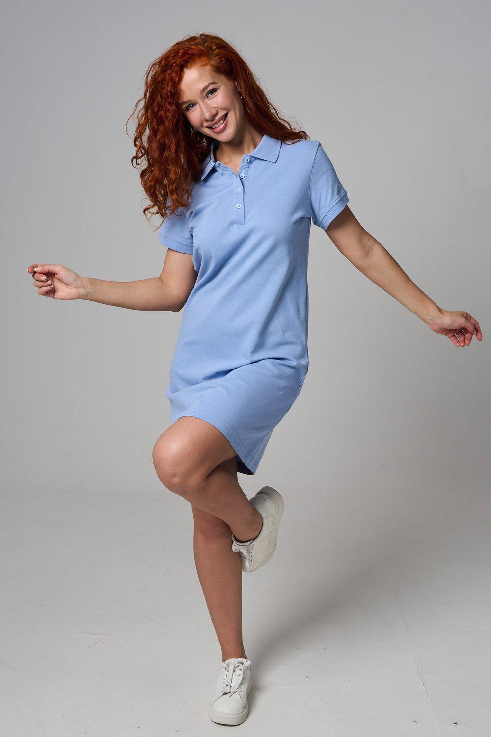 Отличный вариант для жаркого лета - модное платье-поло. Платье имеет отложной ворот и короткий рукав. Кроме того, вверху имеются акцентные пуговицы в цвет платья. Комфортная длина чуть выше колена и прямой крой делает это платье универсальным. Стильное и модное платье подойдет женщинам и девушкам разных возрастов. Хлопок обладает свойствами воздухопроницаемости, что так необходимо в жаркую весеннюю или летнюю погоду. Это изделие прекрасно сочетается как со спортивной обувью, так с классическими туфлями и балетками. На более прохладную погоду можно создавать многослойные образы, сочетая платья с другой одеждой. Это отличный вариант на повседневную основу на работу в офис, прогулки или учебу. Благодаря достаточному свободному не обтягивающему прилеганию в области талии оно является максимально удобным и комфортным.