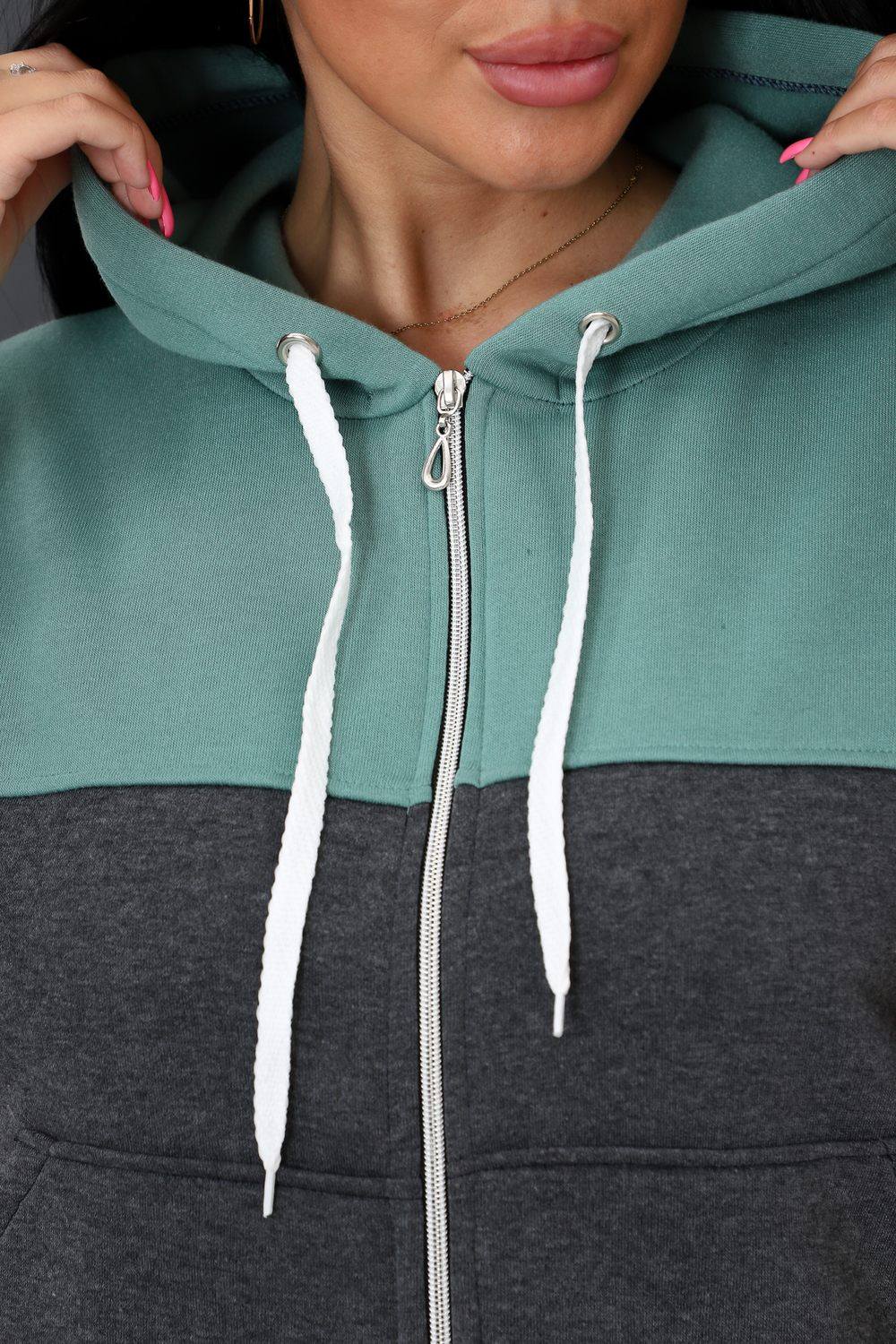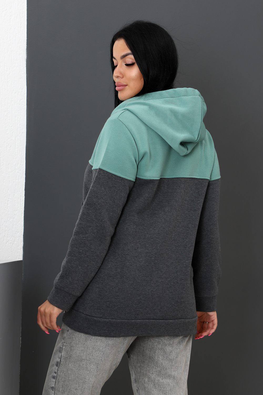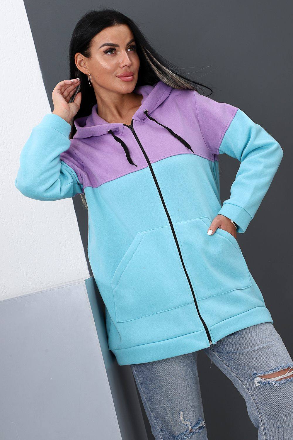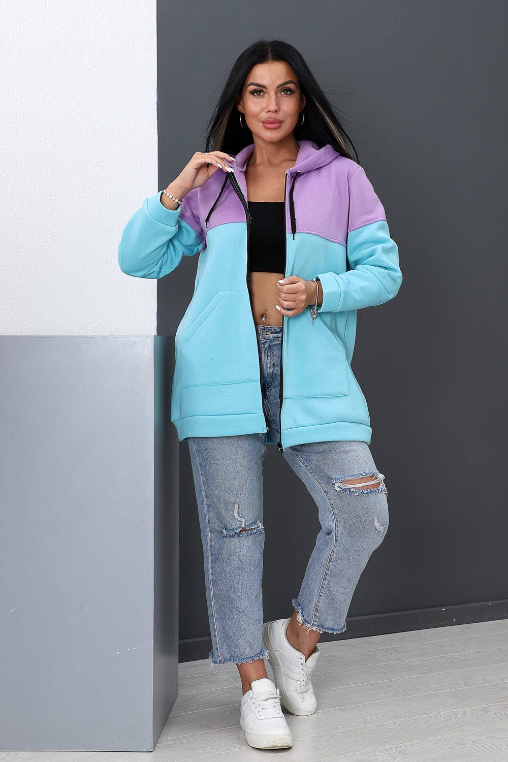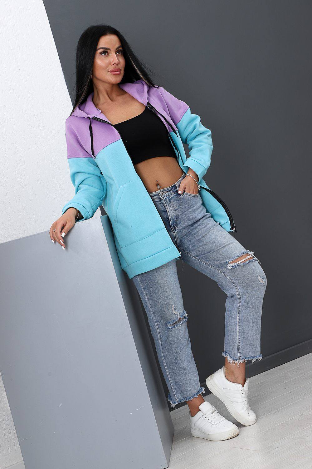 Толстовка женская на молнии, с капюшоном на шнуровке через люверсы. Накладные карманы "кенгуру", рукав и низ изделия на манжете. Теплая и удобная. Подойдет для прогулок и путешествий, спорта и дома. Подойдет всем девушкам и женщинам в сочетании с любым низом .