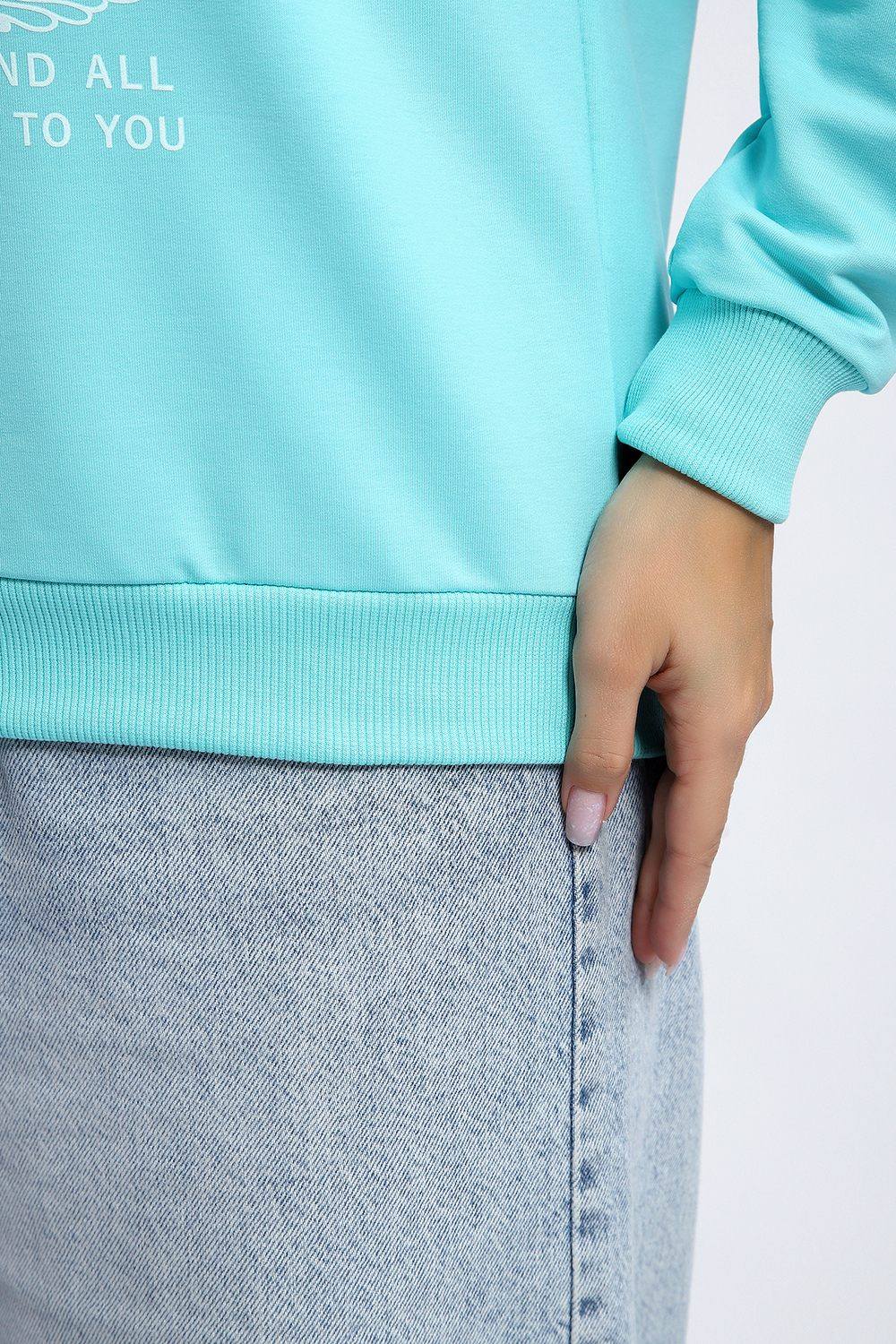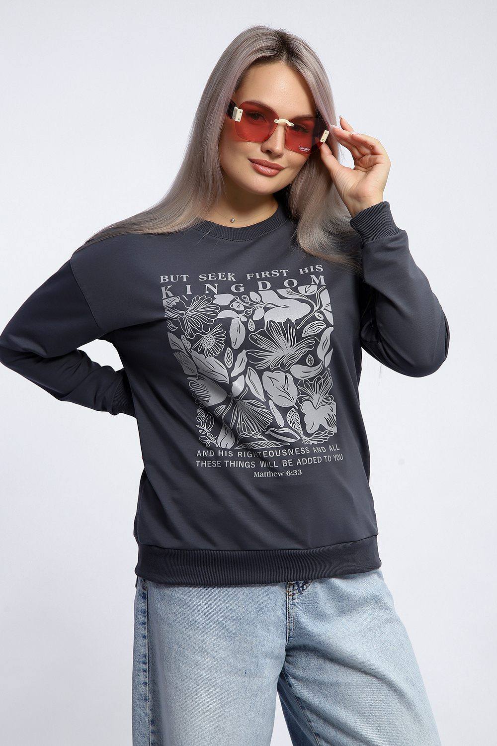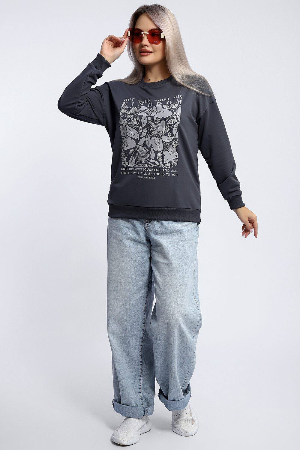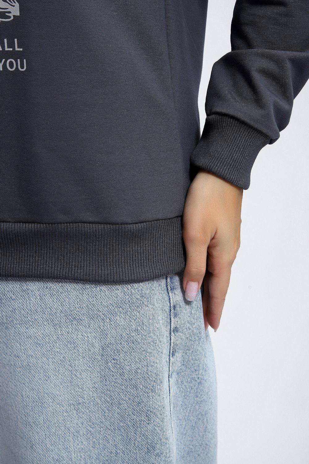 Толстовка свободного кроя "оверсайз" со спущенной линией плеча прекрасный вариант для прохладной погоды! Мягкое, эластичное кашкорсе в тон ткани использовано для отделки горловины, манжет и пояса. На полочке декоративный принт.