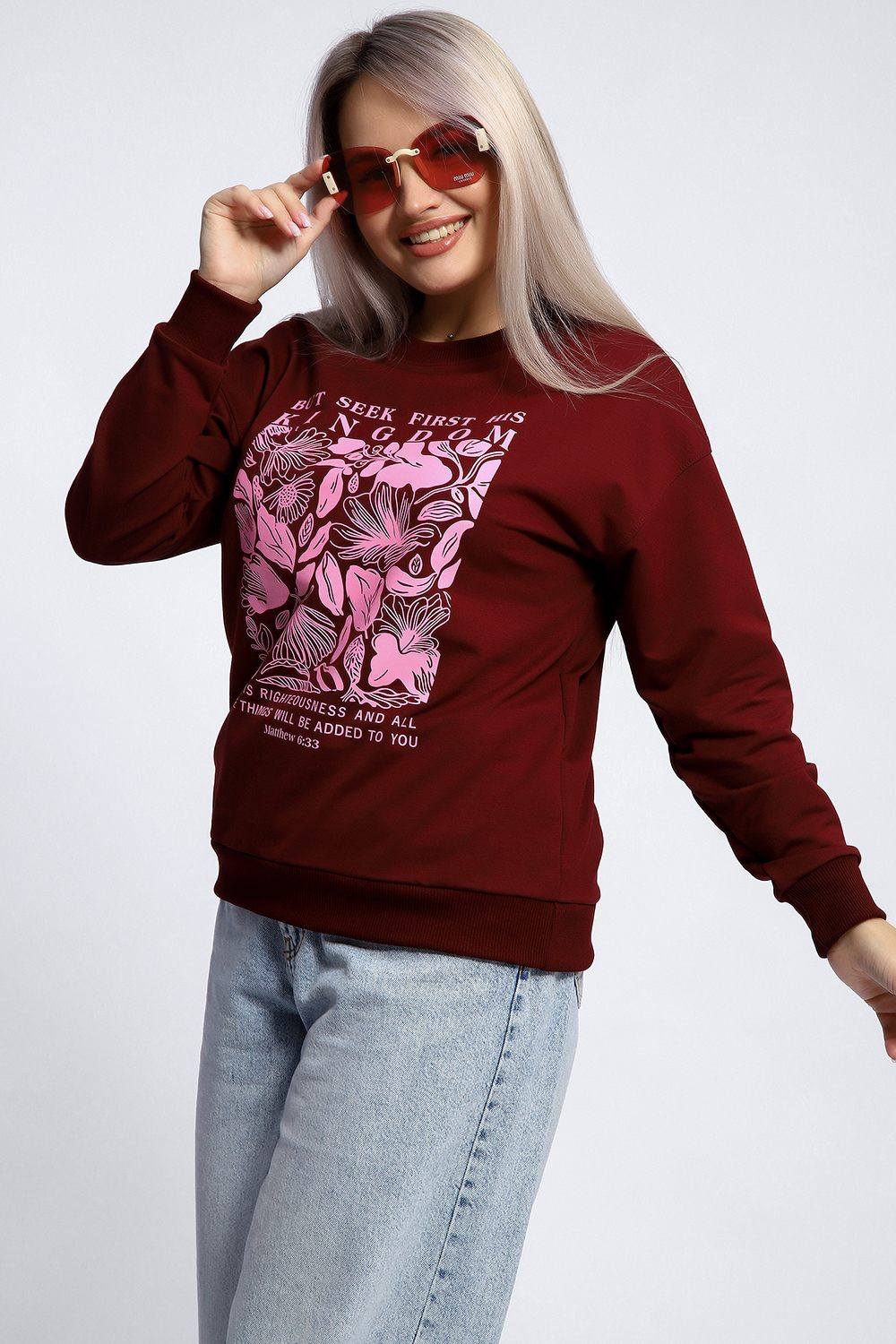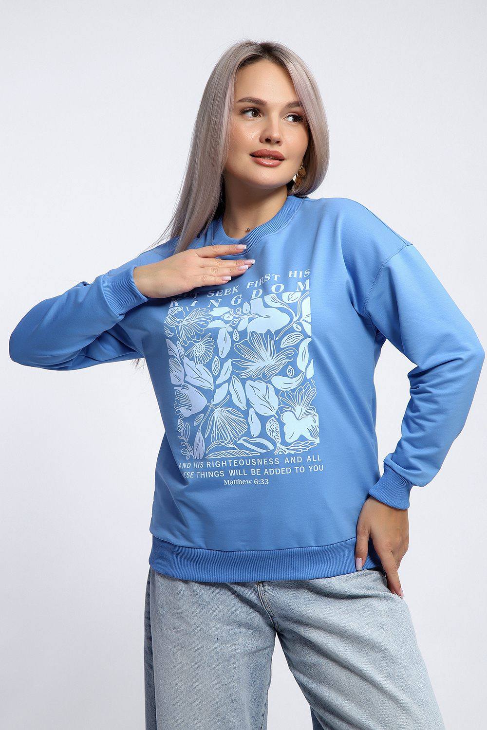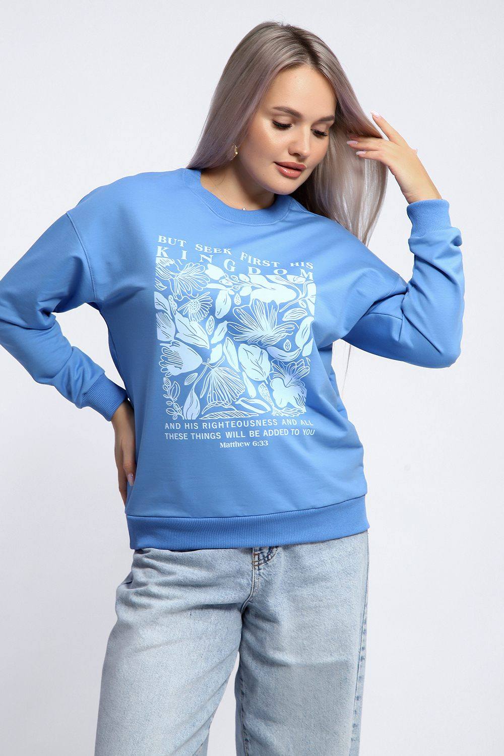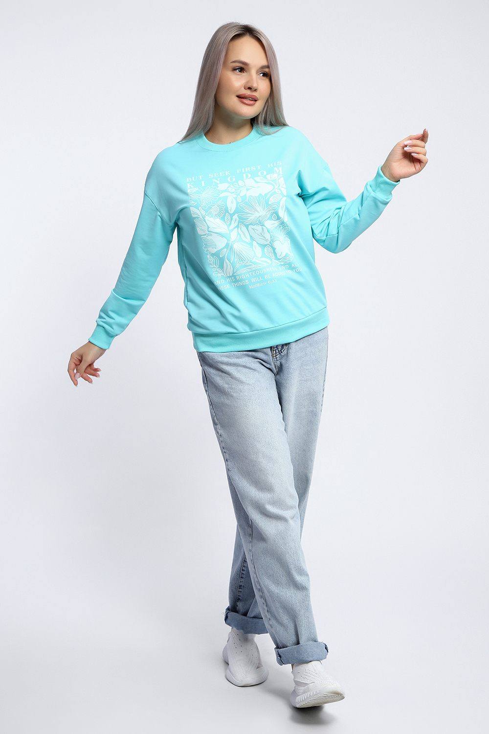 Толстовка свободного кроя "оверсайз" со спущенной линией плеча прекрасный вариант для прохладной погоды! Мягкое, эластичное кашкорсе в тон ткани использовано для отделки горловины, манжет и пояса. На полочке декоративный принт.