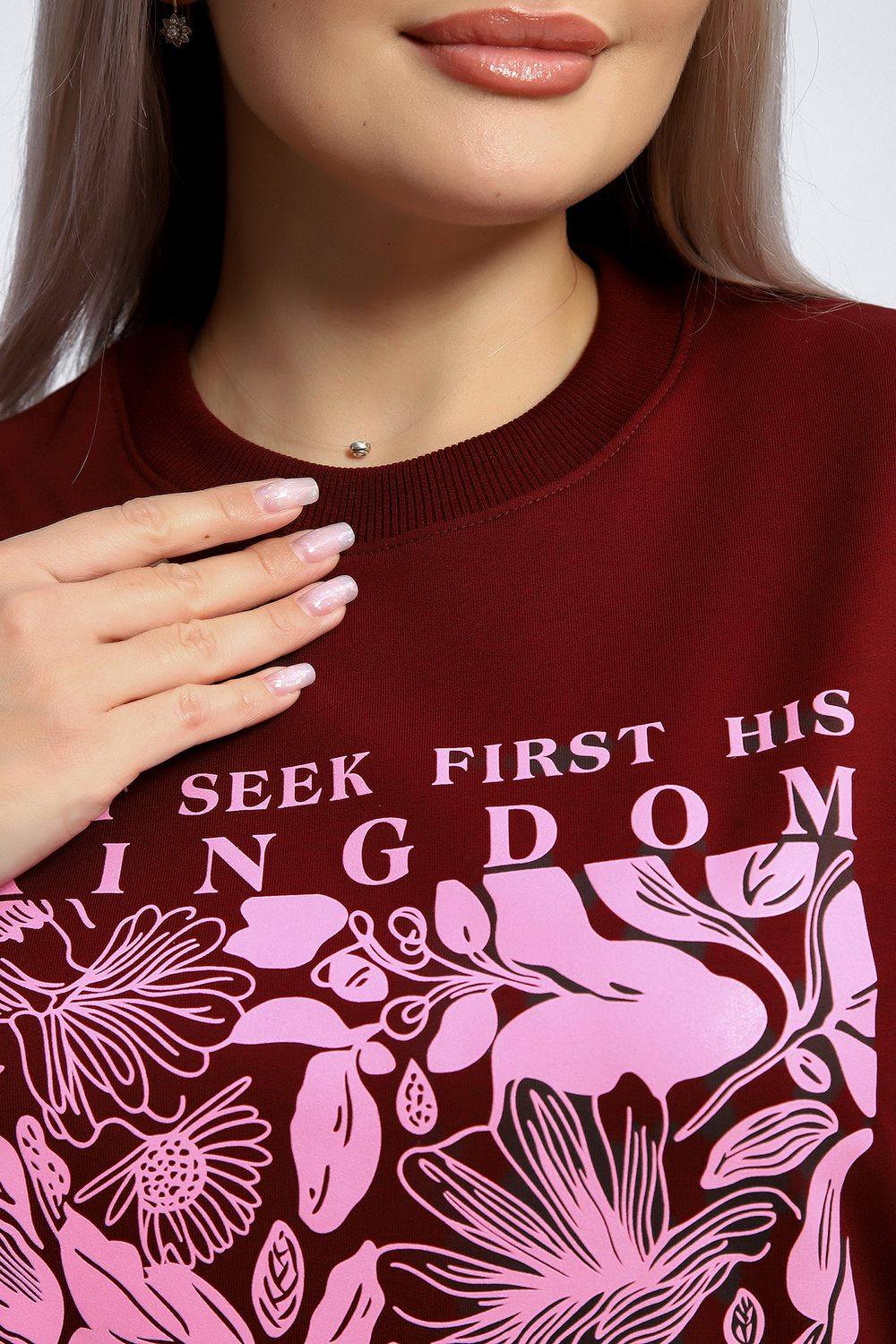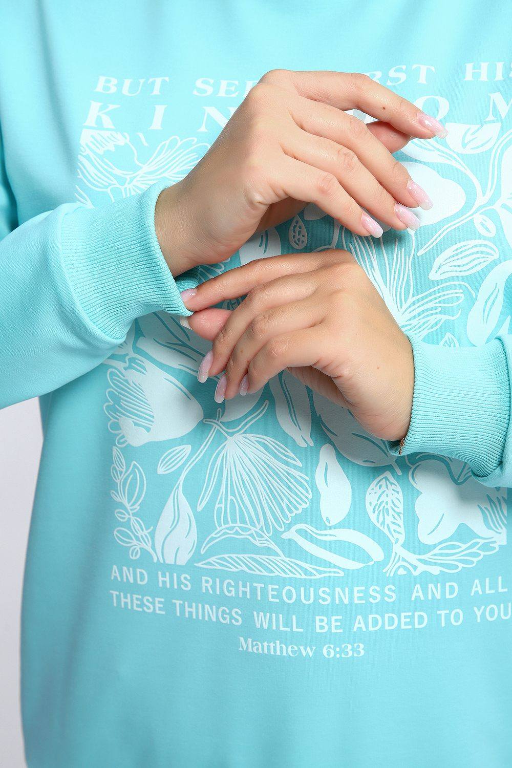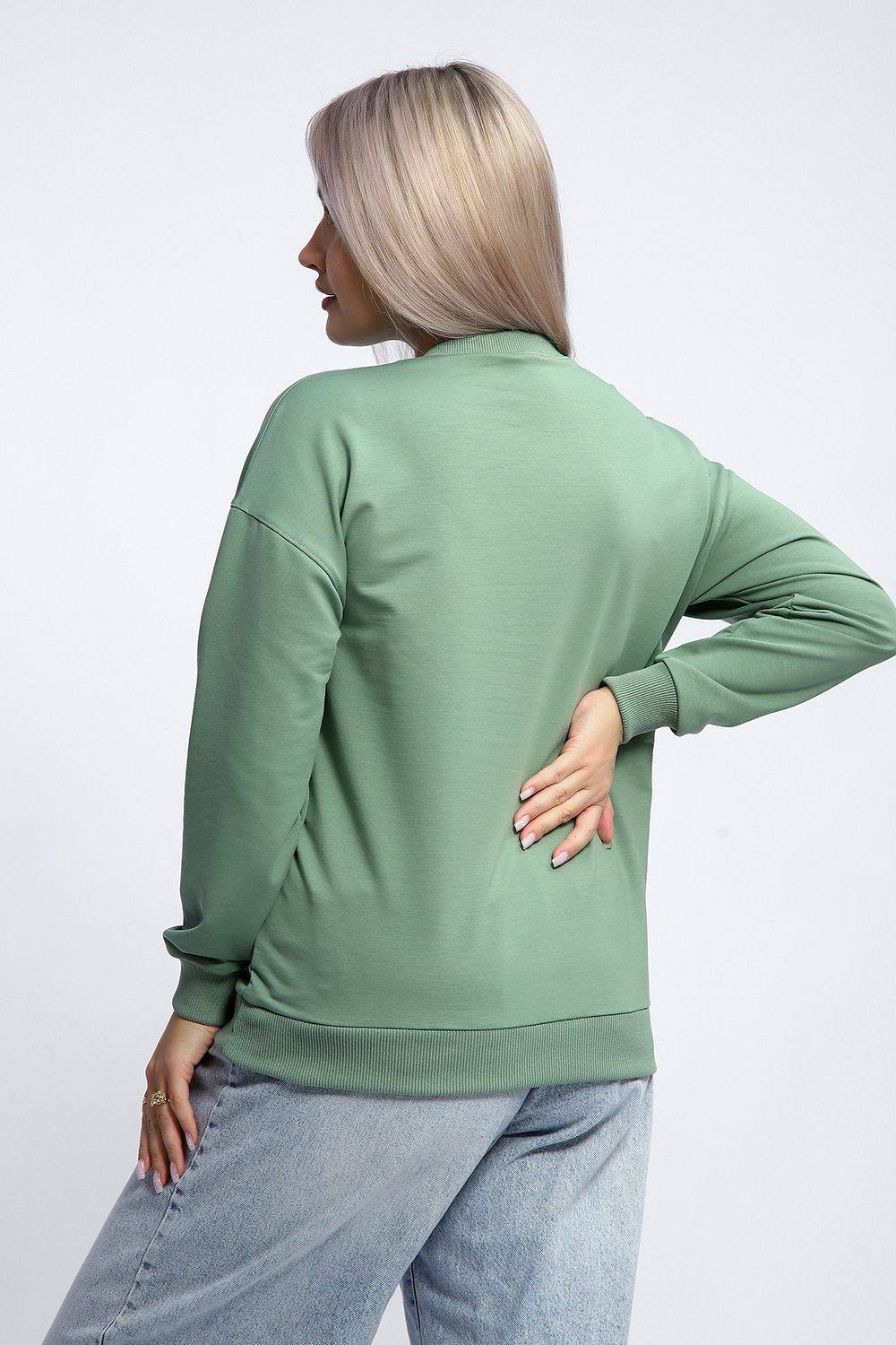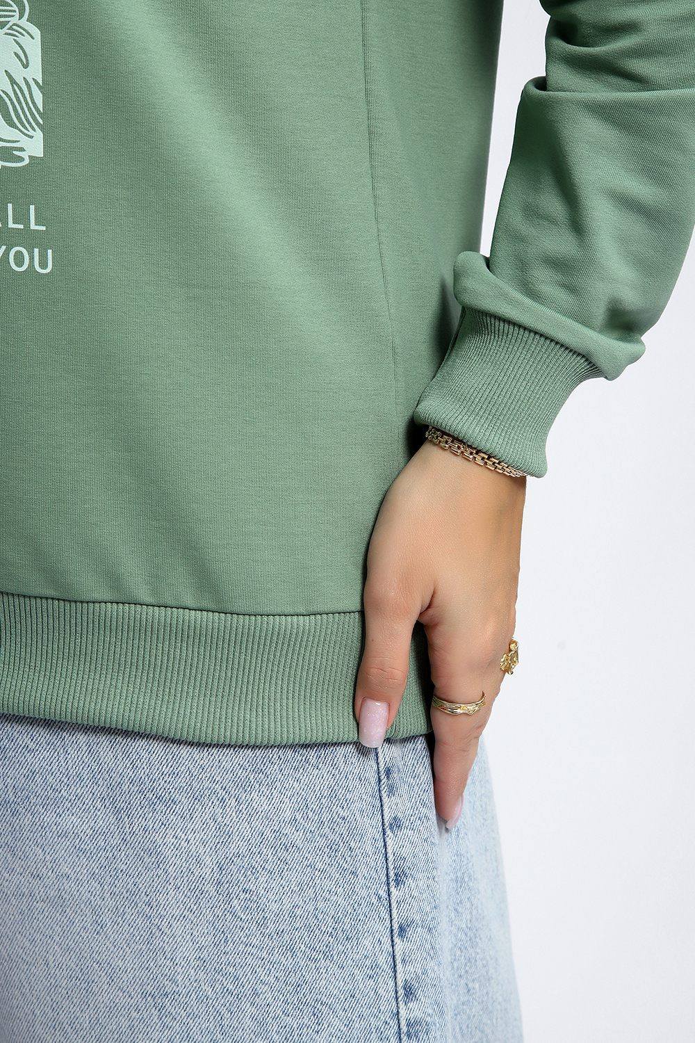 Толстовка свободного кроя "оверсайз" со спущенной линией плеча прекрасный вариант для прохладной погоды! Мягкое, эластичное кашкорсе в тон ткани использовано для отделки горловины, манжет и пояса. На полочке декоративный принт.
