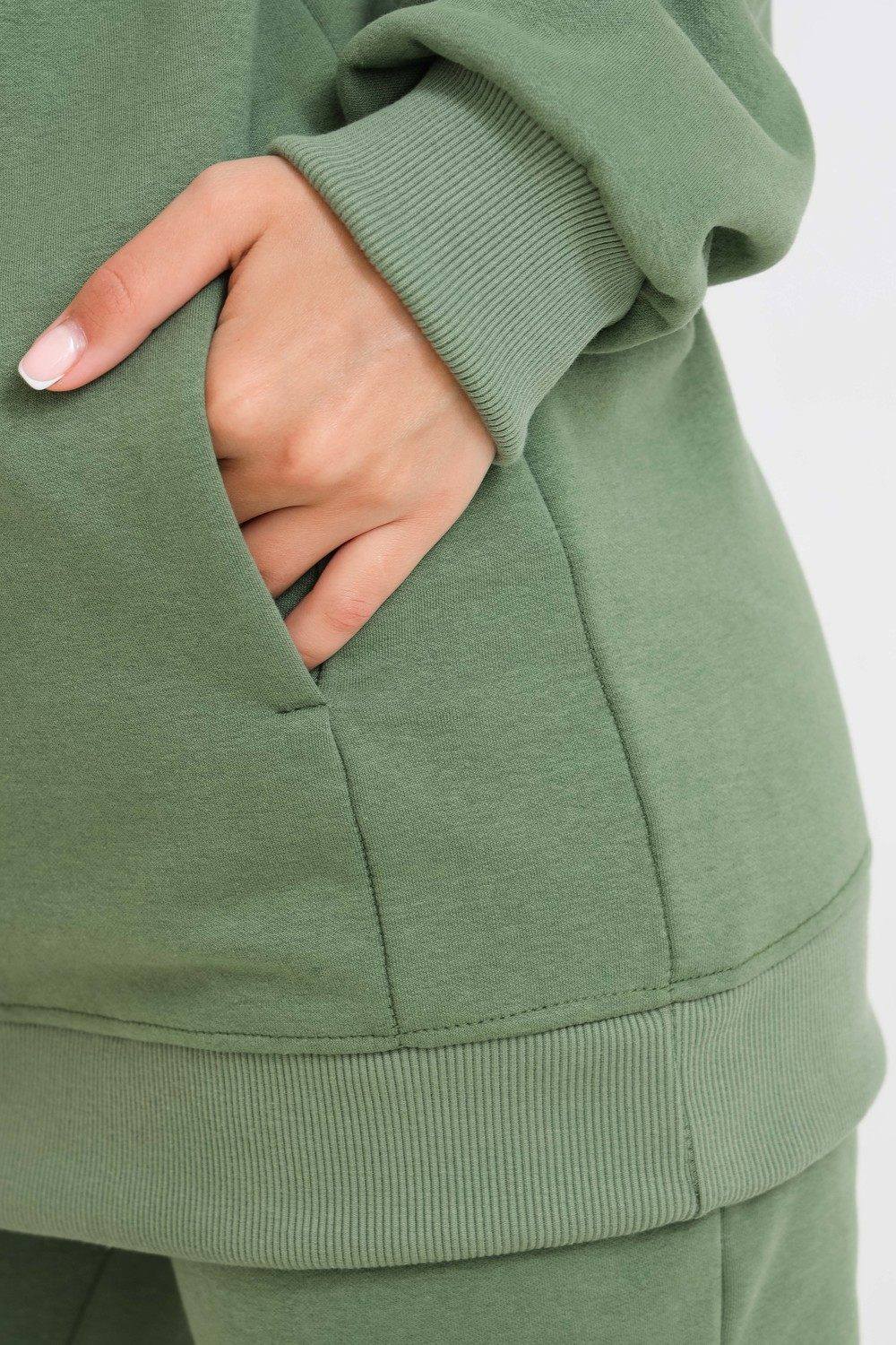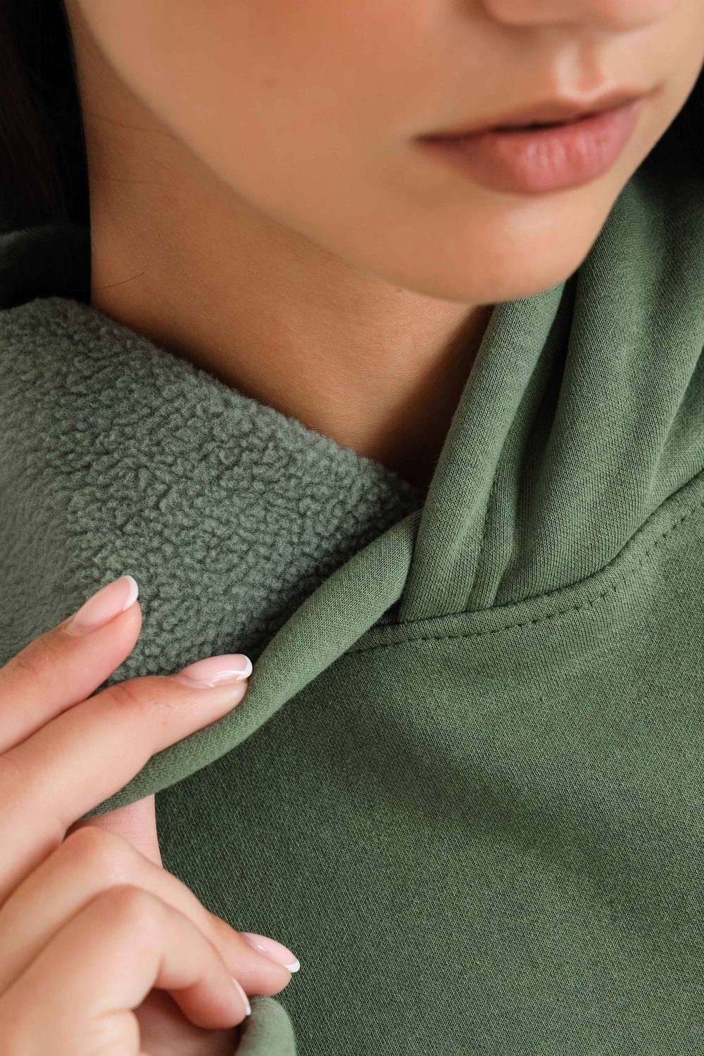 Худи, выполненное из очень качественной ткани - интерсофт с начёсом "барашек". Плотность 320гр. В отличие от ткани футер 3-х нитка, начёс не осыпается и не пилингуется. Ткань плотная, упругая, мягкая, одна из толстых и тёплых видов трикотажа в своей группе. Начёс ткани обработан специально в виде барашка. Очень красивый и приятный к телу. Ткань двухсторонняя - интерлок пенье плюс флис. Худи идеально подходит для холодного время года. Имеет средний объём и прямой силуэт. Поэтому в измерениях указаны одинаковые значения обхватов груди, талии, бёдер. Спущенная линия плеч обеспечит комфорт и свободу движений. Капюшон свободный. На полочке имеется подрезной бочок, в котором располагаются внутренние глубокие карманы. Манжеты выполнены из качественного кашкорсе, которые не растягиваются после стирки. Рекомендуется ручная стирка.