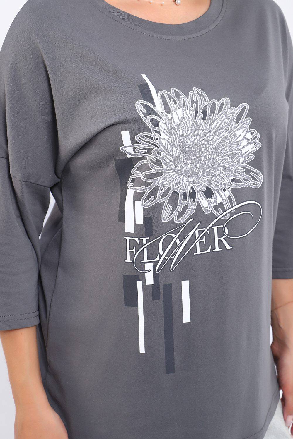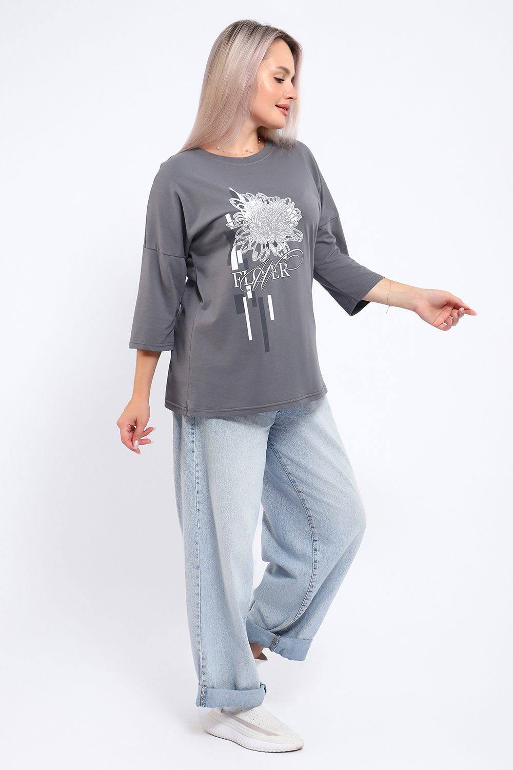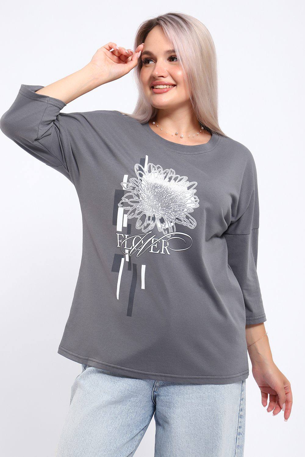 Туника из натурального хлопка прекрасный вариант для повседневного образа. Будет комфортна и как базовый вариант к классическим брючкам, так и к стилю "спортшик". Принт в виде большого цветка пиона с использованием глиттера и техники объёмной печати украшает модель, придавая ей изысканный вид. Обработка деталей вкруговую с закрепкой, рукав длиной 3/4, горловина втачная из основной ткани. Большие размеры!