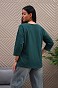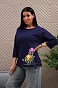 Туника женская. Ткань кулирка, хлопок 100%. Крой свободный, горловина круглой формы, обработана окантовкой. Линия плеч спущена. Длинна рукава 3/4, со швом по локтю. Низ изделия прямой. На полочке принт, шелкография.
